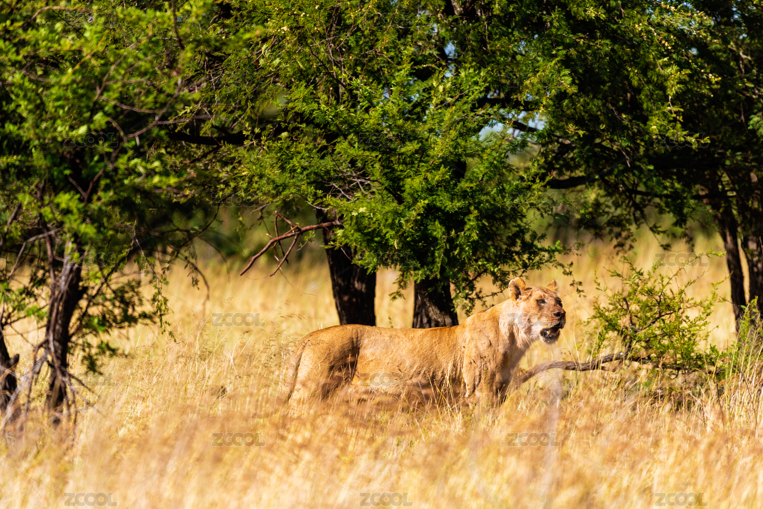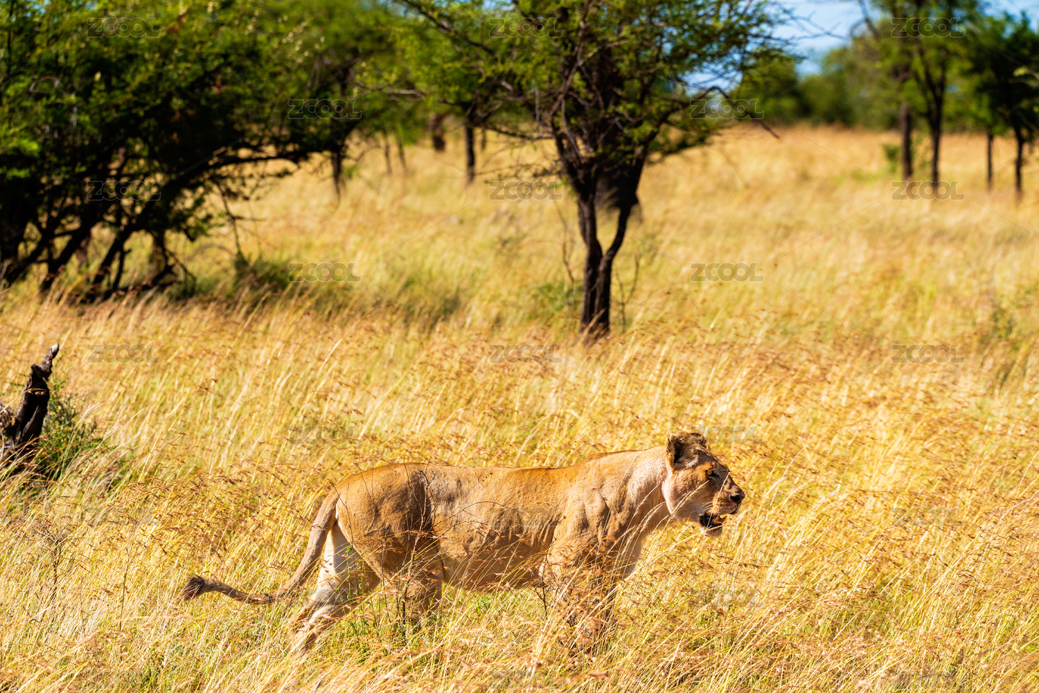 非洲大草原上正在巡獵的母獅子