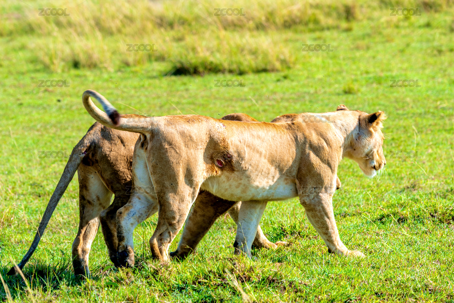 非洲肯尼亞馬賽馬拉草原上正在巡視的母獅