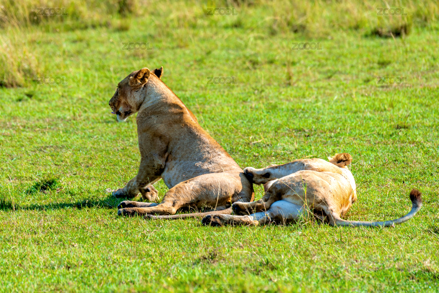 兩只母獅在馬賽馬拉國家公園的草地上休息