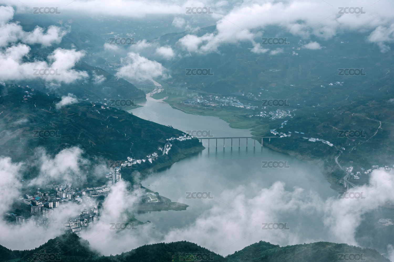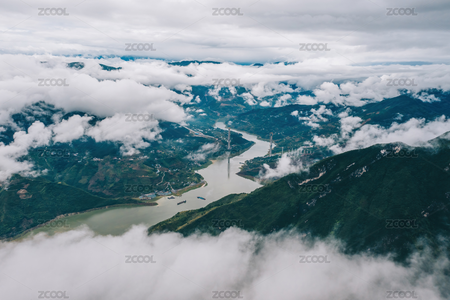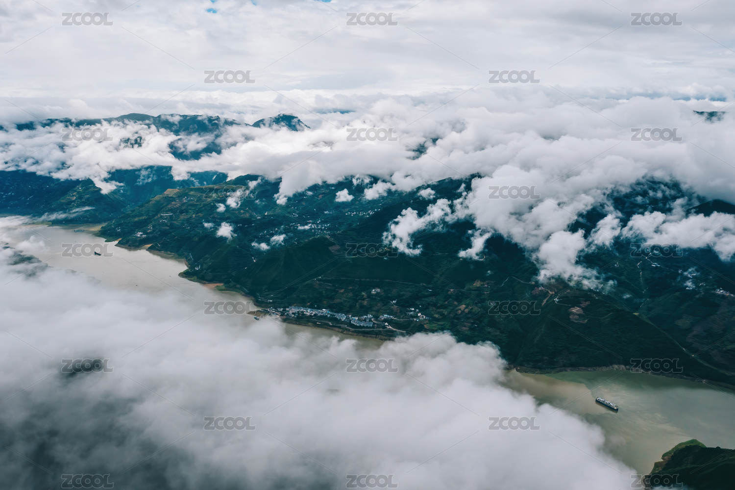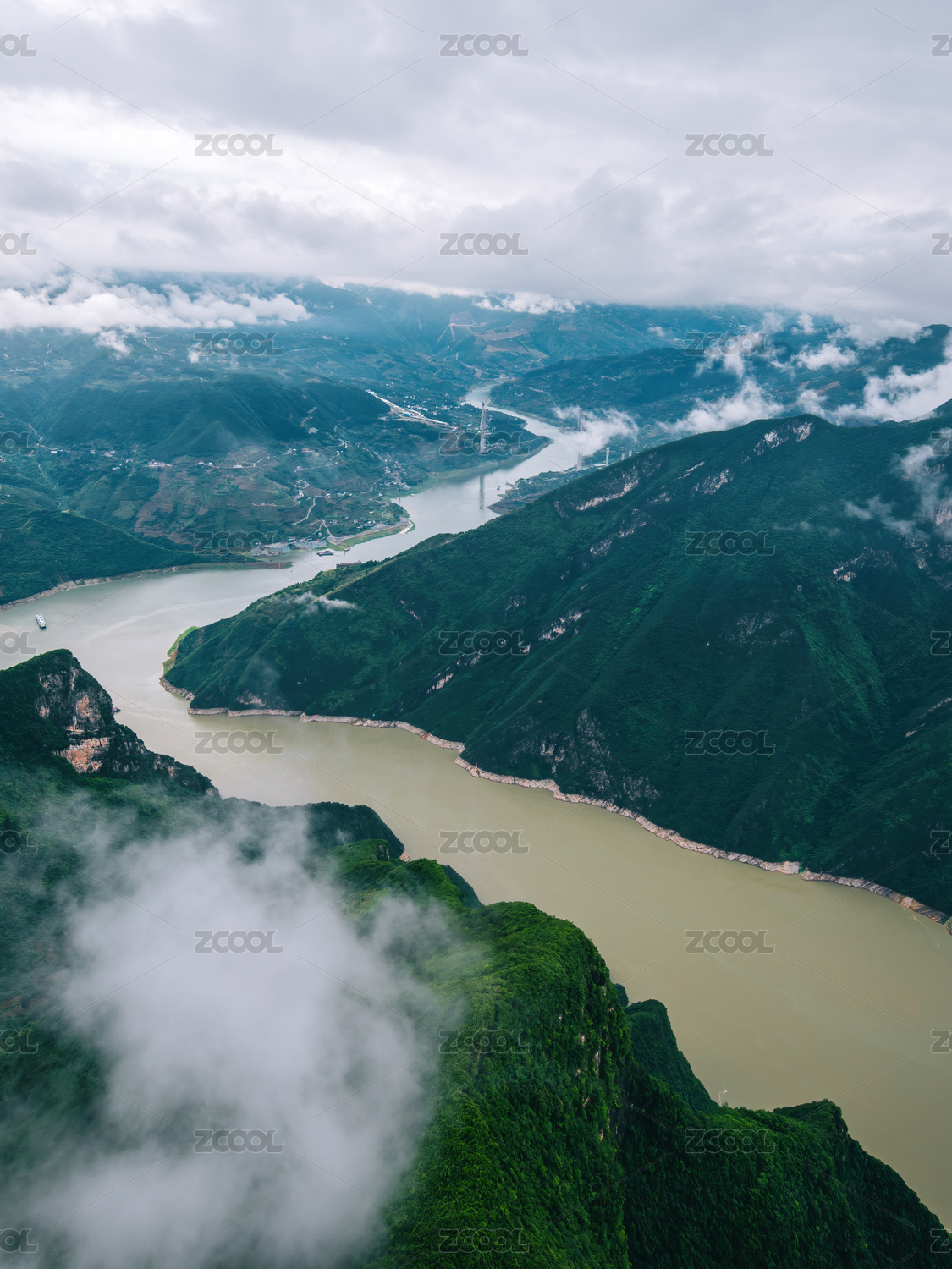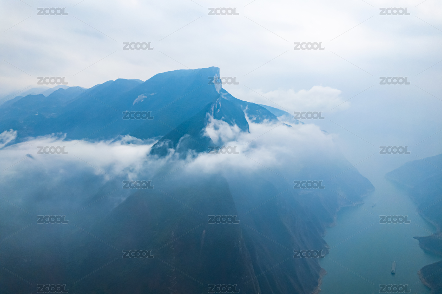 長(zhǎng)江三峽之巔壯麗河山云霧繚繞航拍攝影配圖