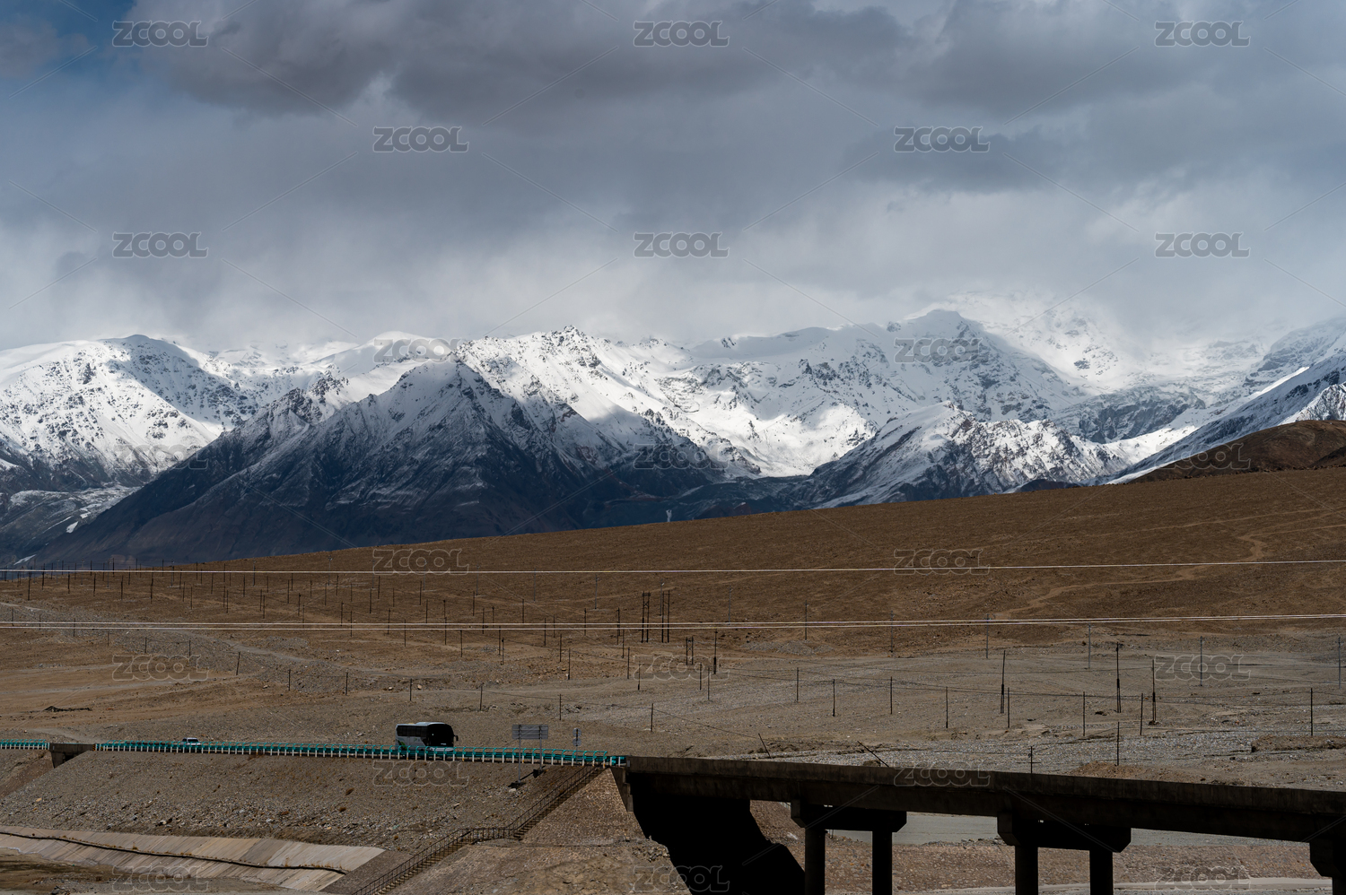 中國新藏線上喀喇昆侖山脈的雪山