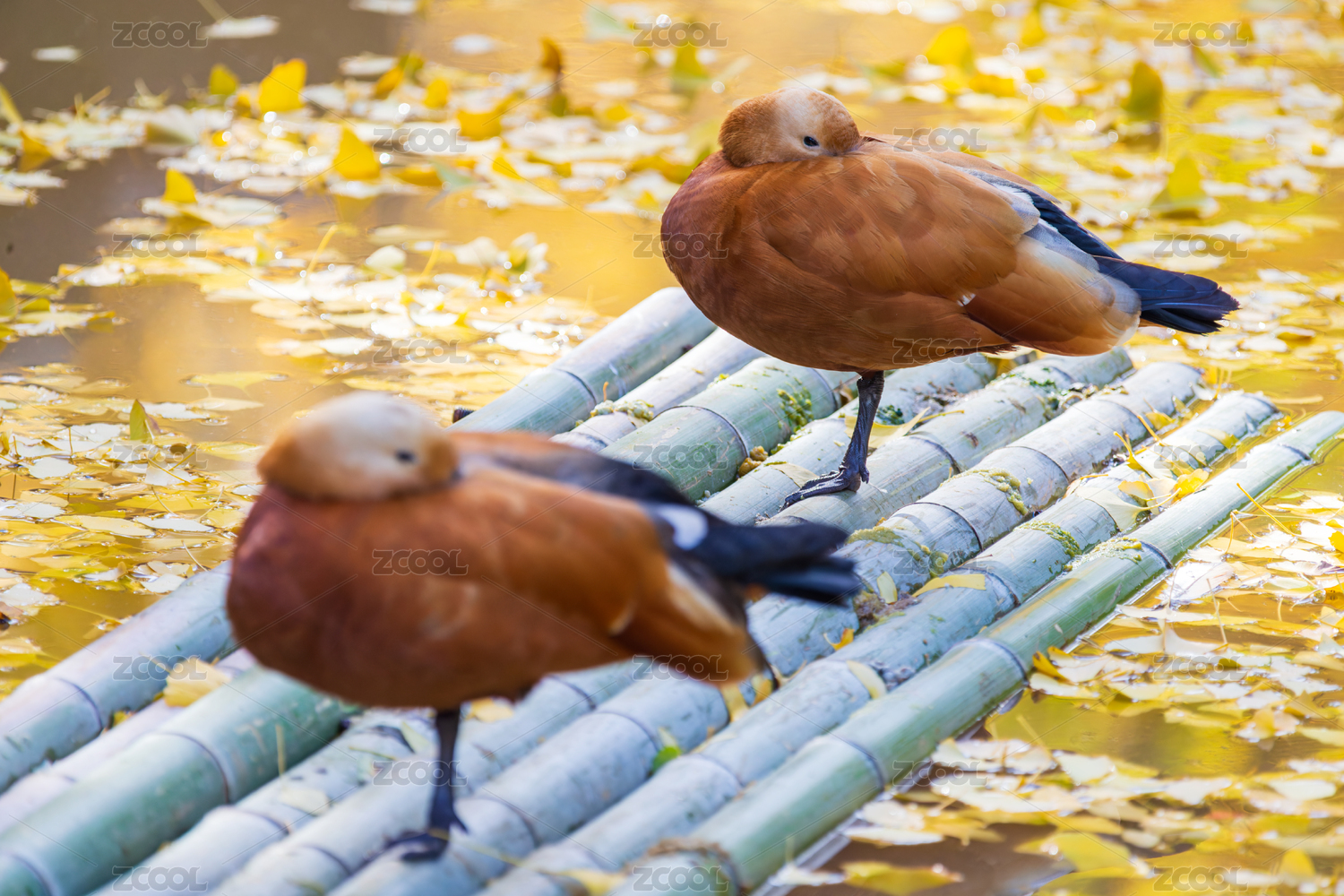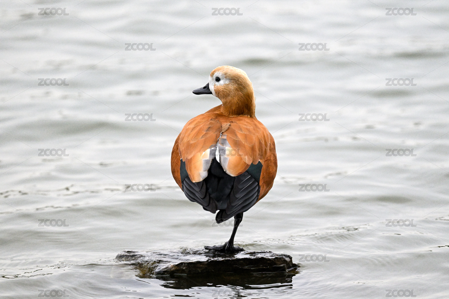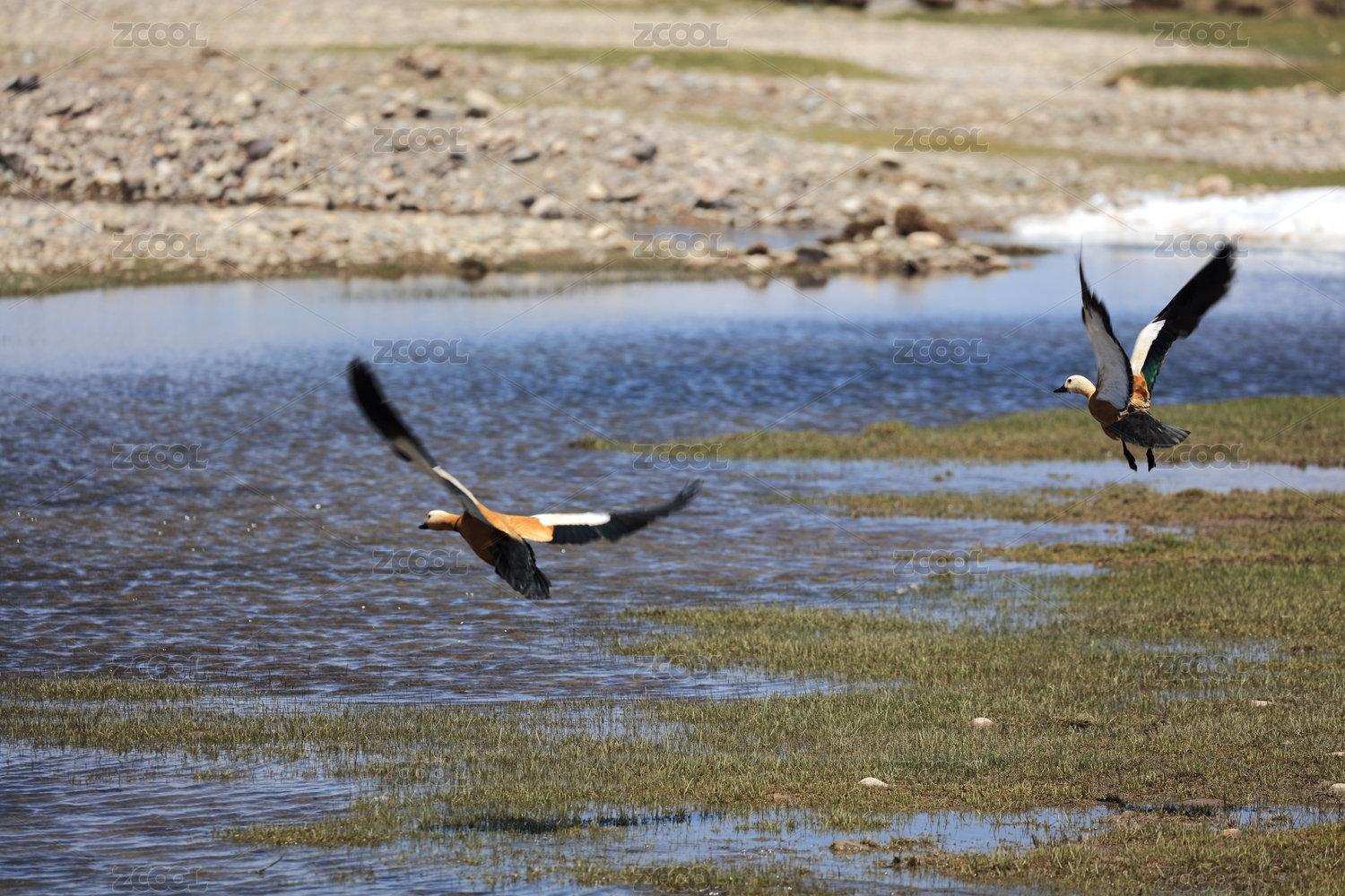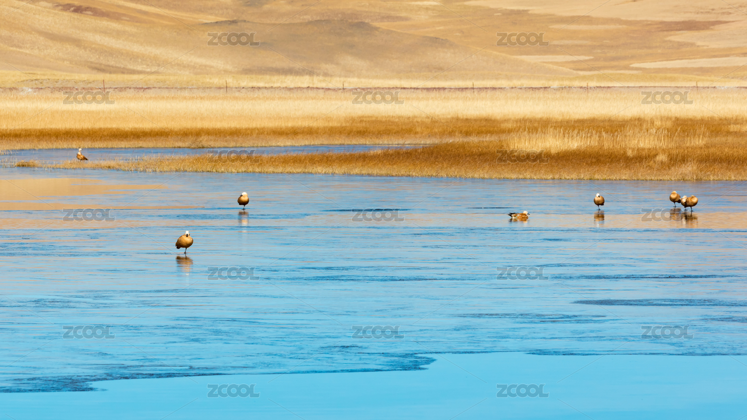 中國西藏日喀則仲巴縣冰面上的赤麻鴨
