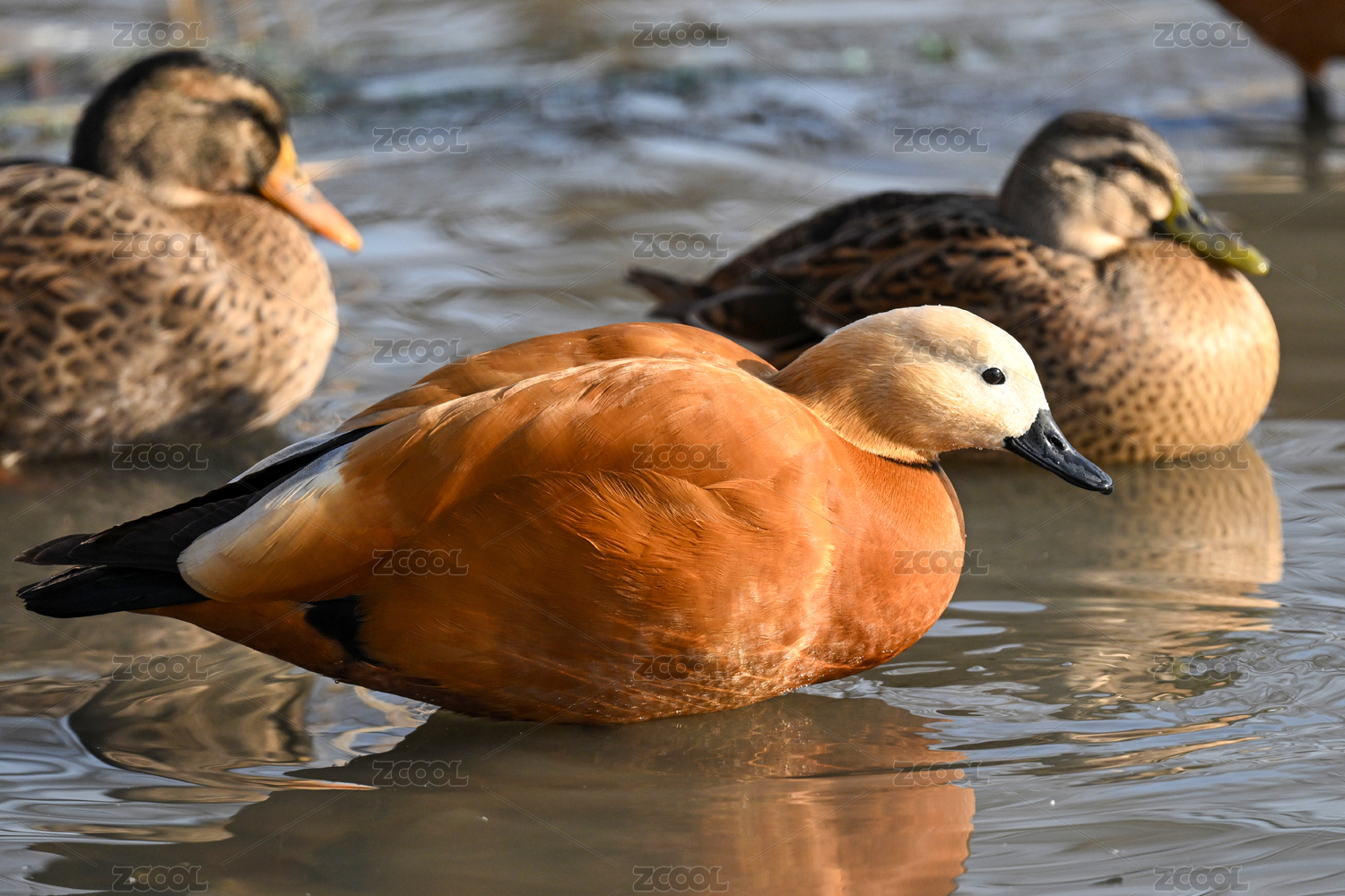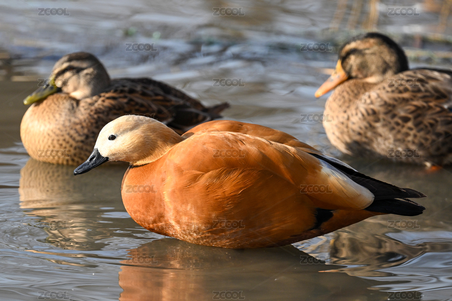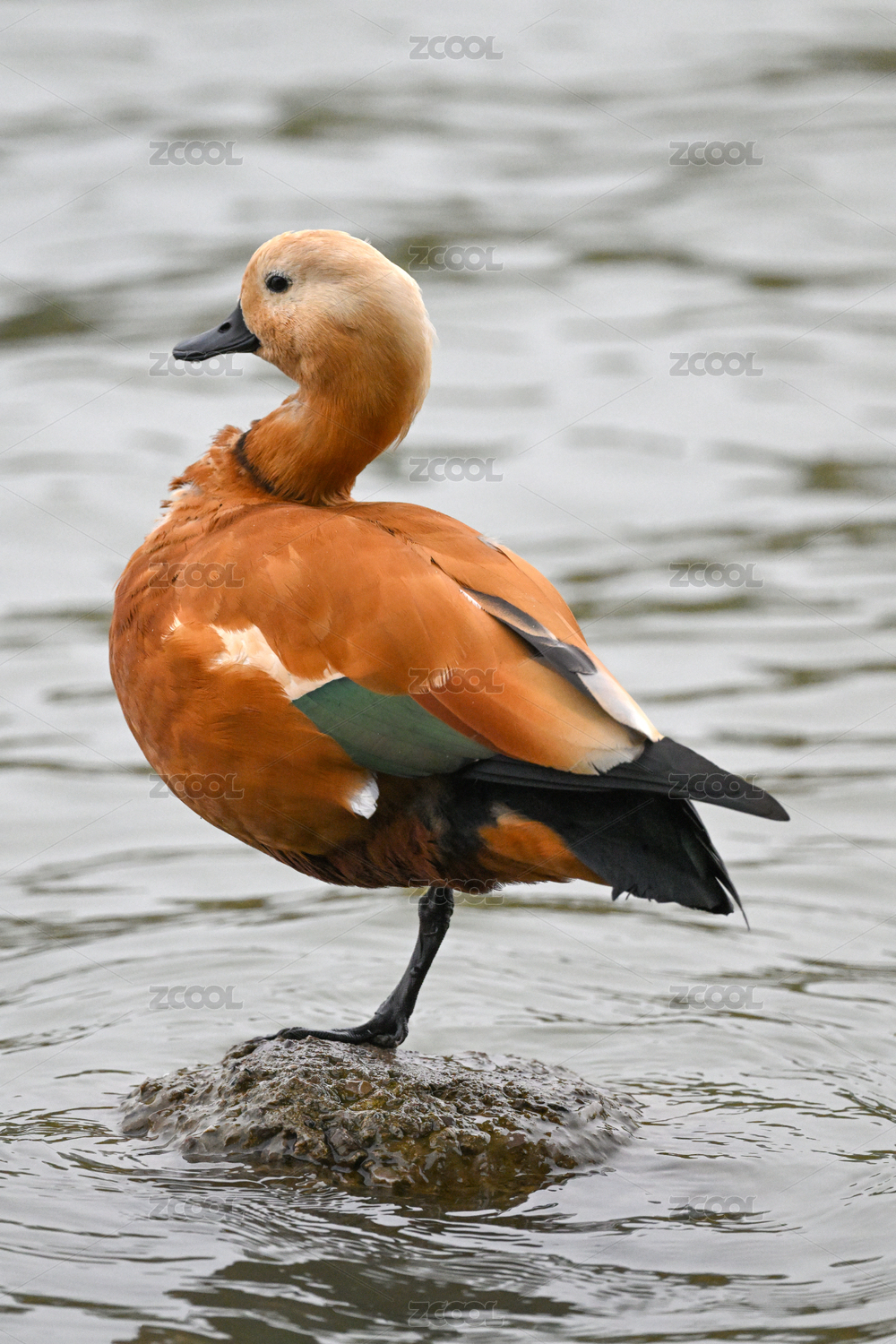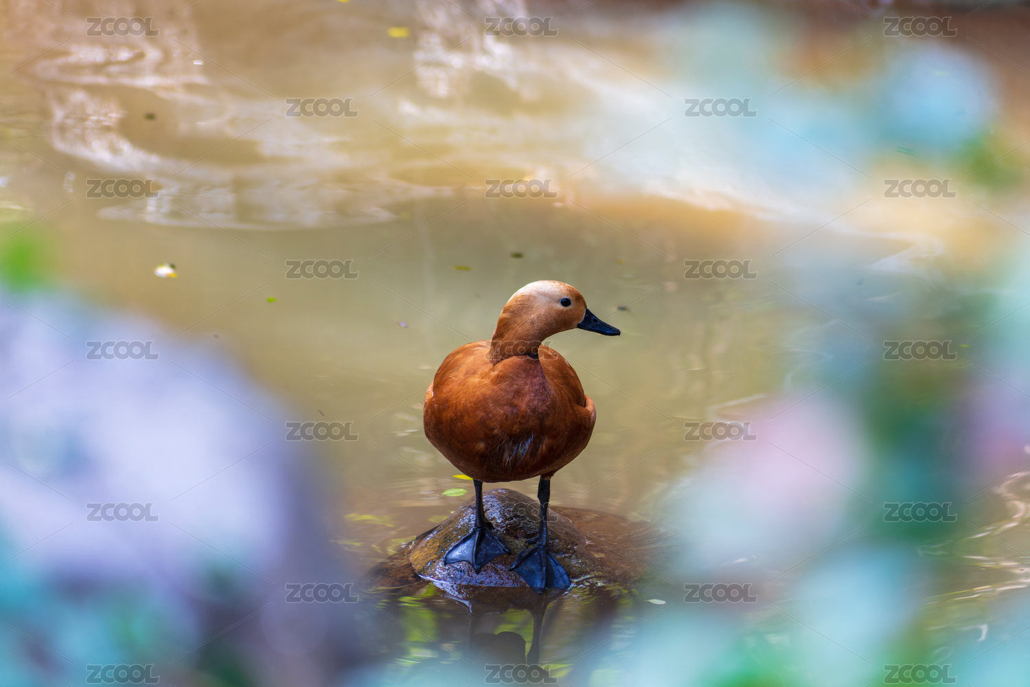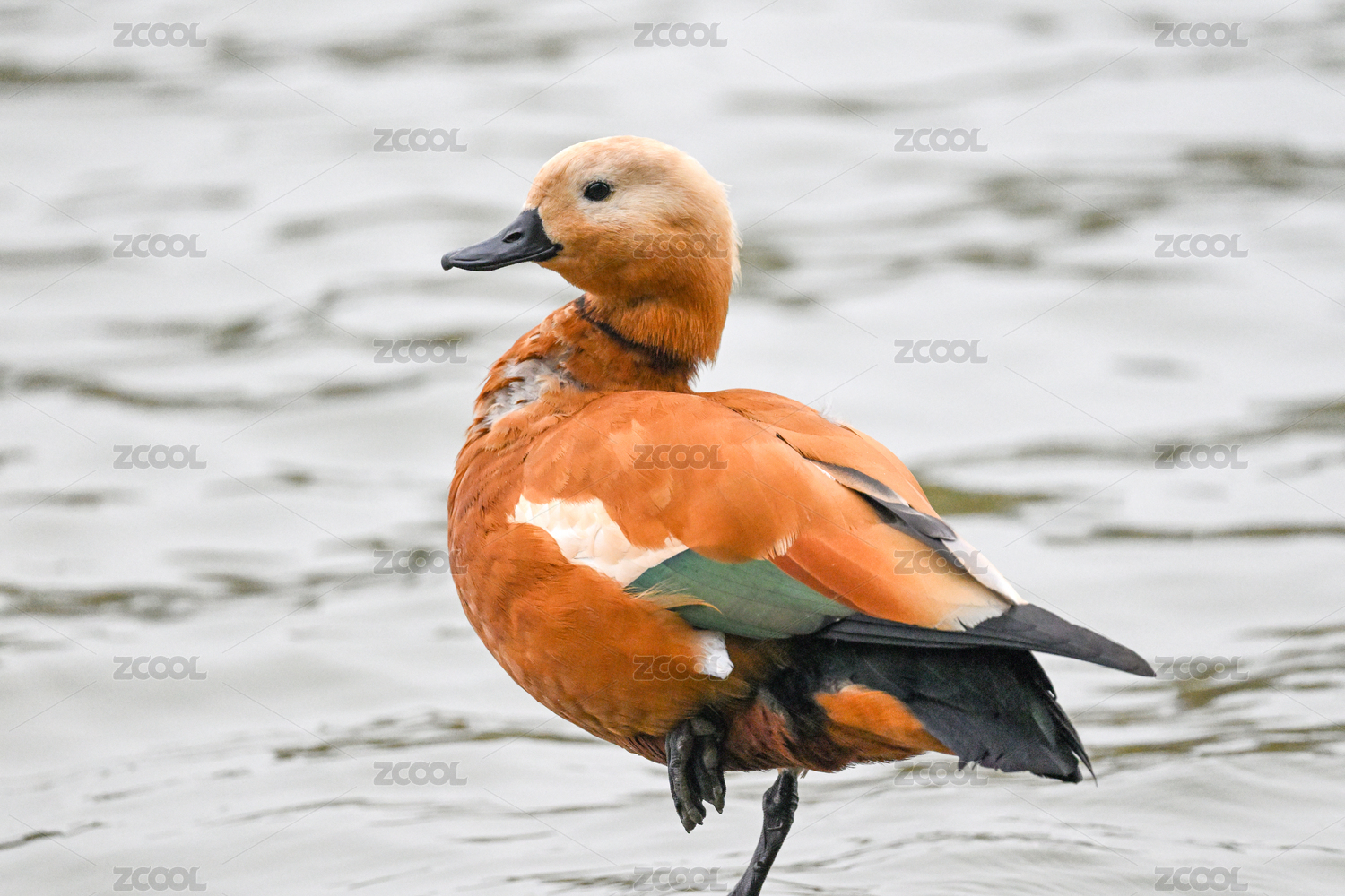中國西藏日喀則仲巴縣冰面上的赤麻鴨