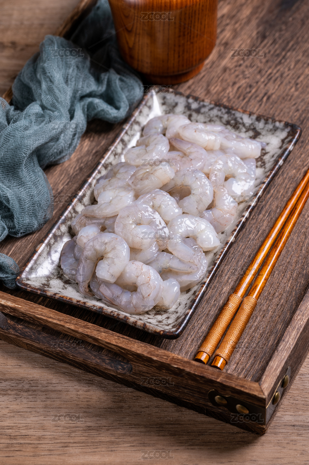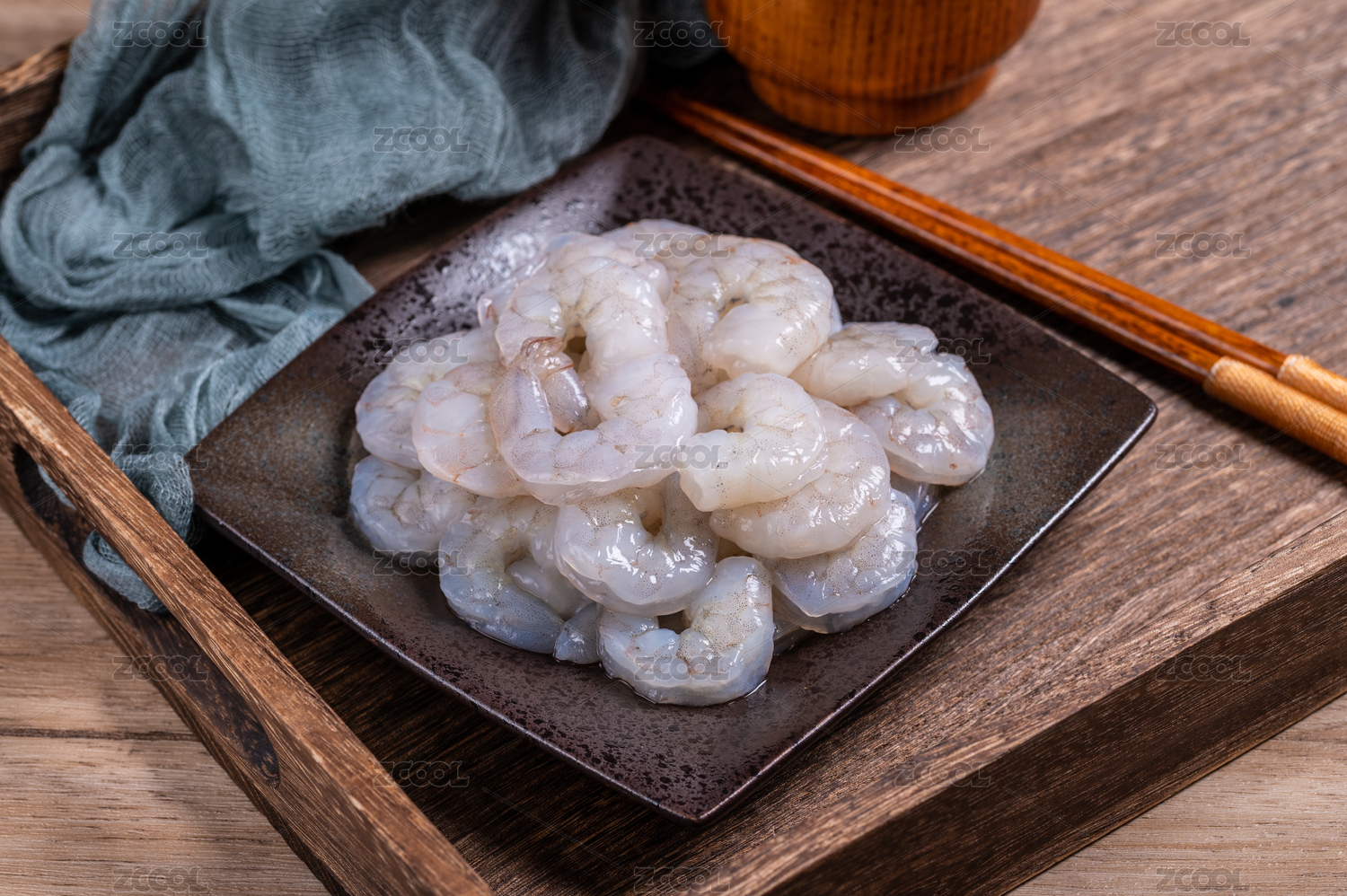 木桌背景上海本幫菜水晶蝦仁