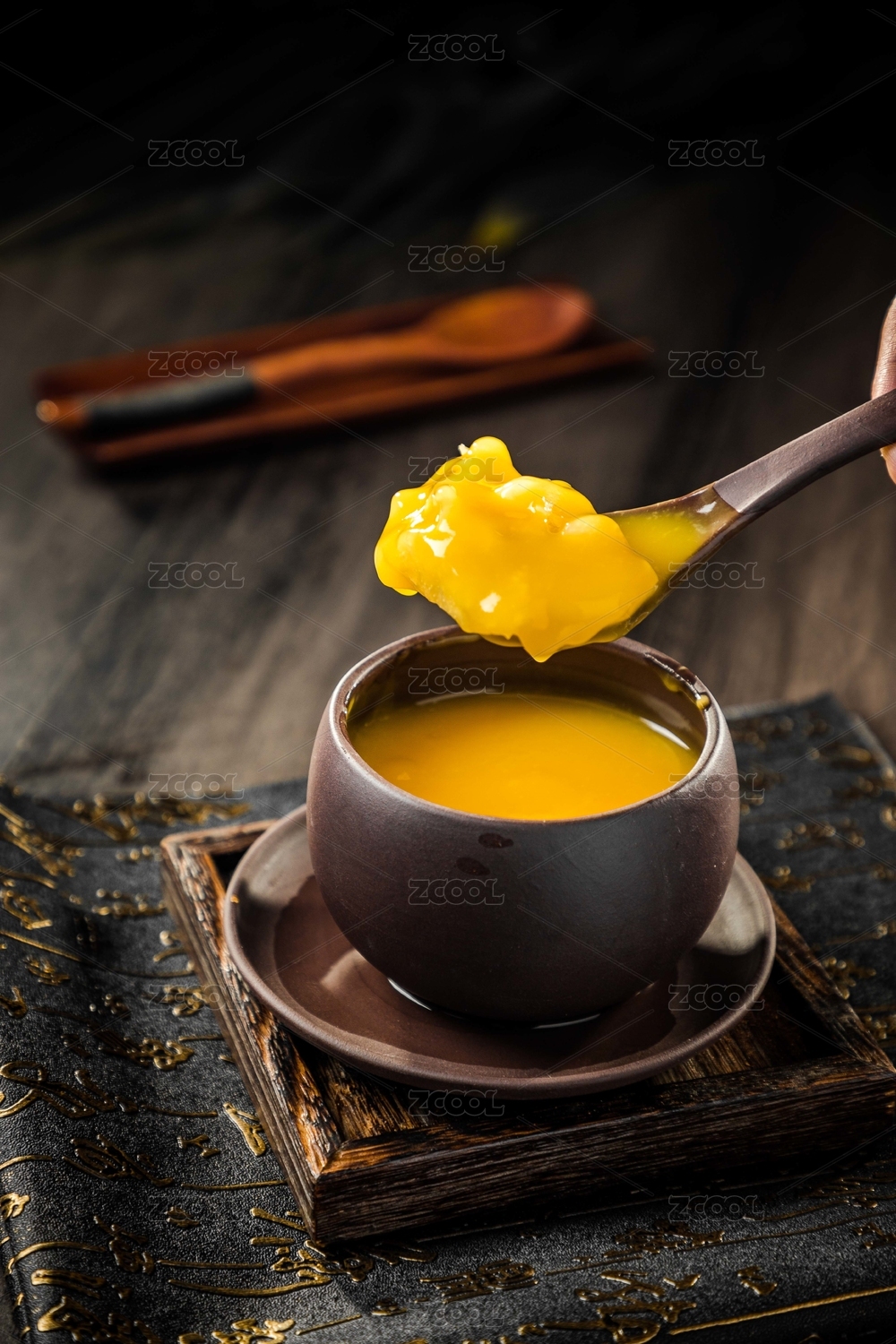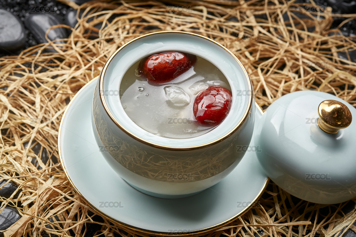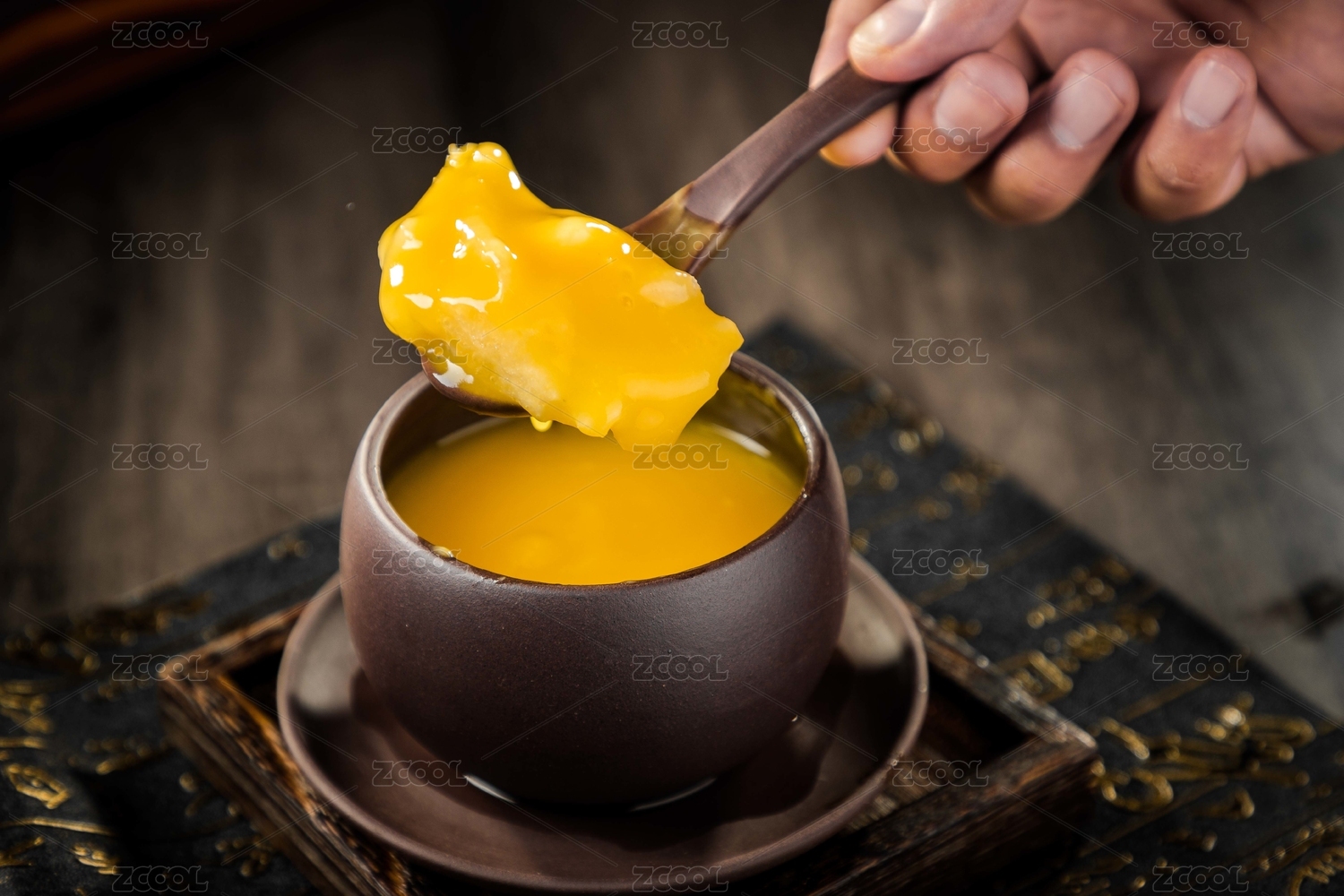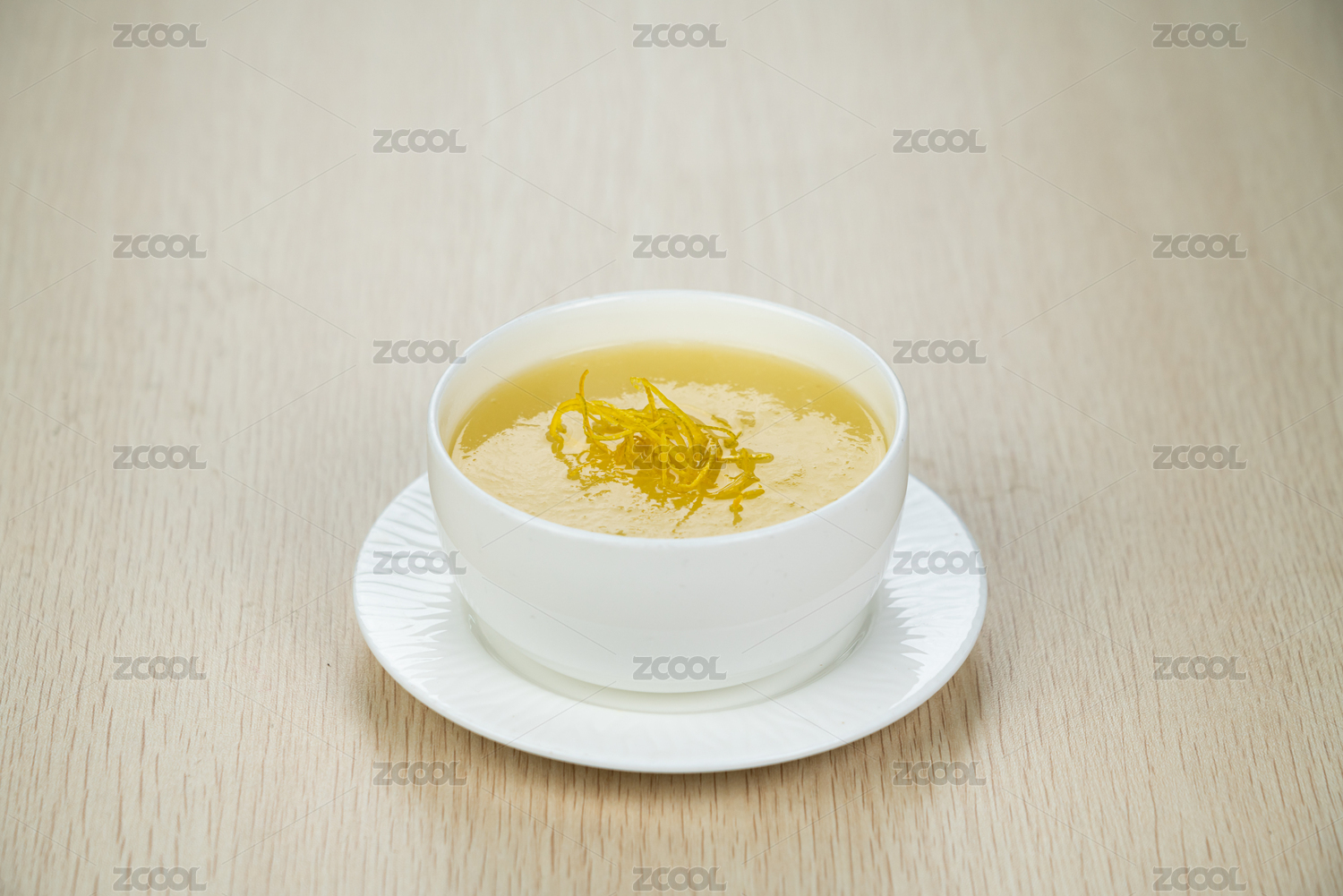 煮好的燕窩羹在自然的木紋場景里