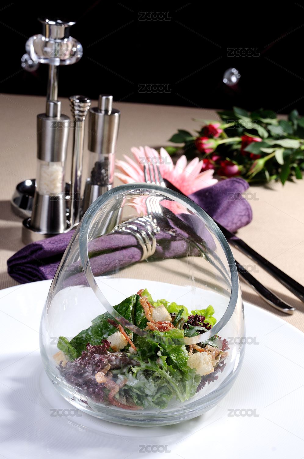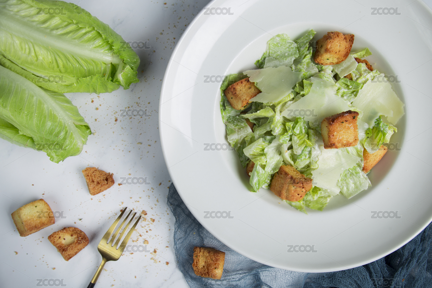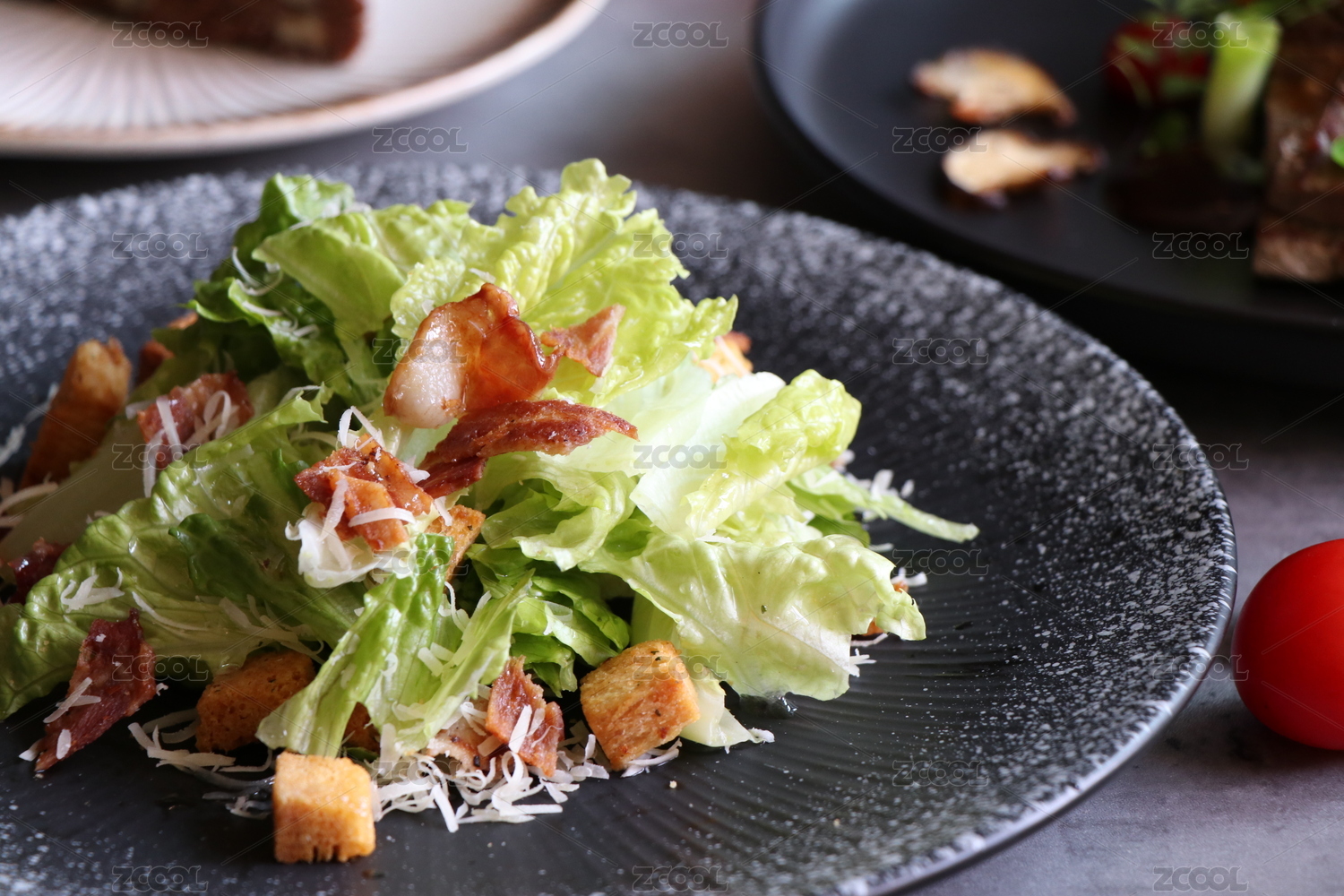 西餐中的凱撒沙拉特寫