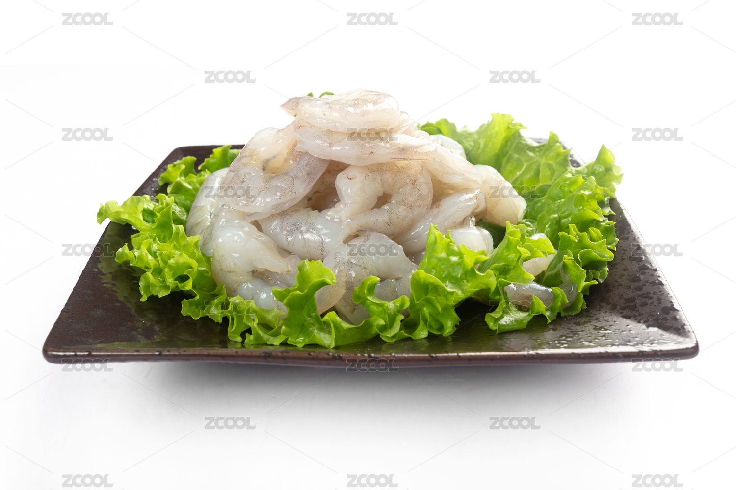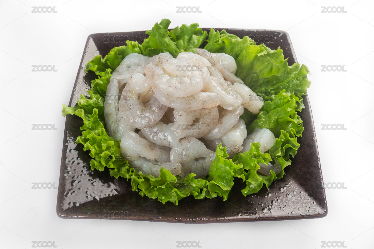 放在黑盤(pán)子里的新鮮去殼南美青蝦仁