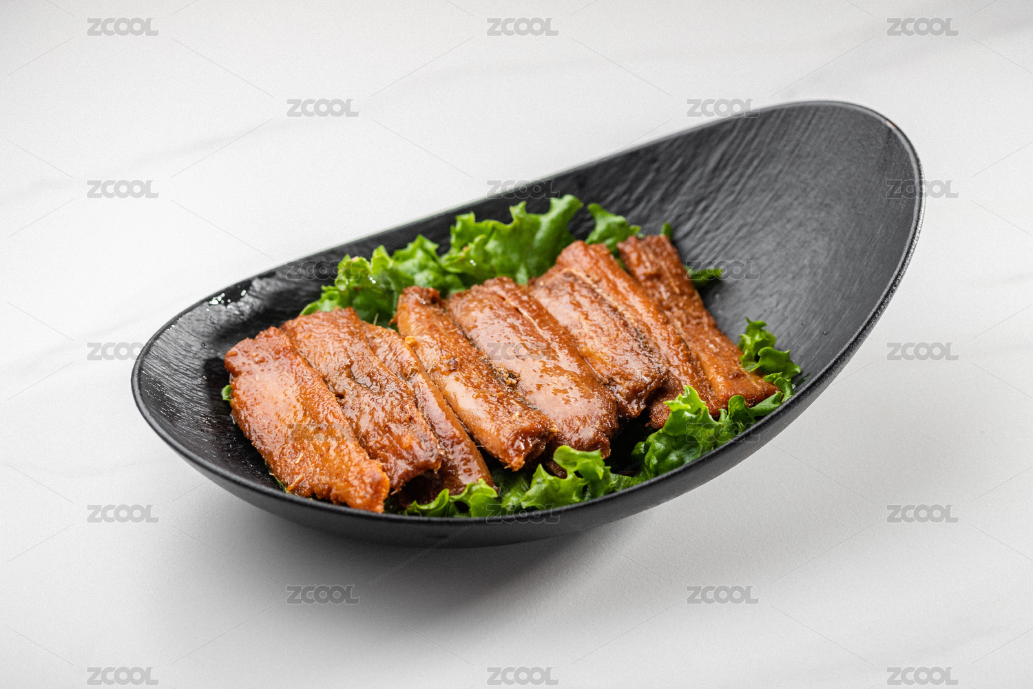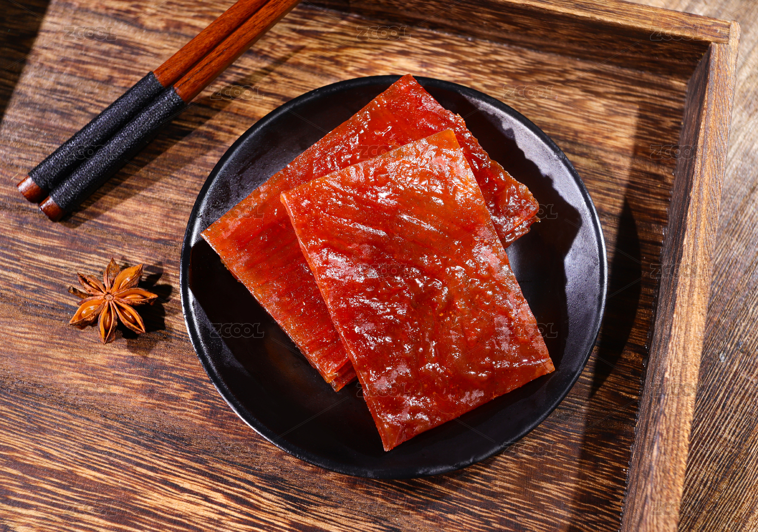 古風(fēng)黑盤(pán)子上的豬肉脯