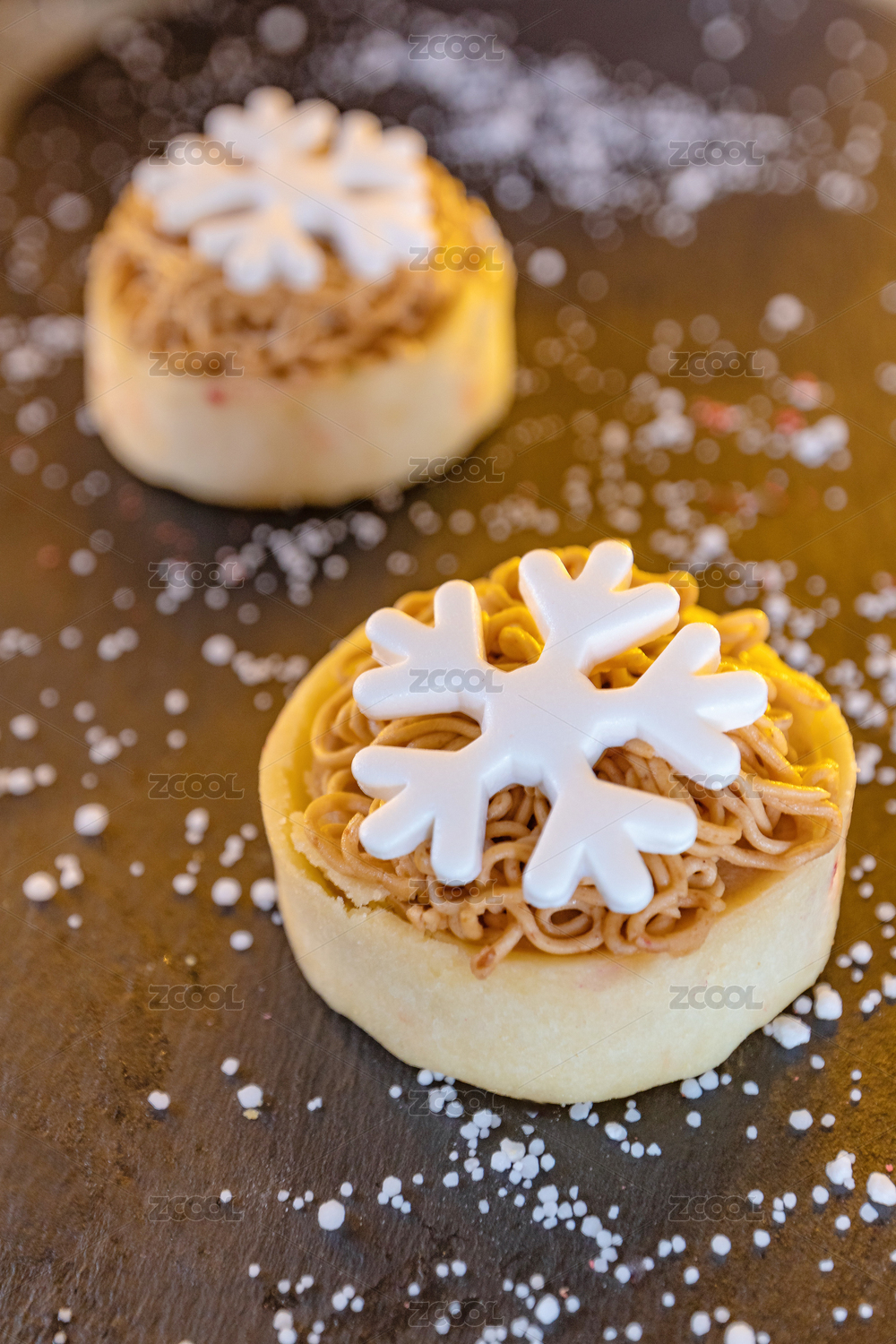 黑盤(pán)子上的兩個(gè)雪花形狀甜品