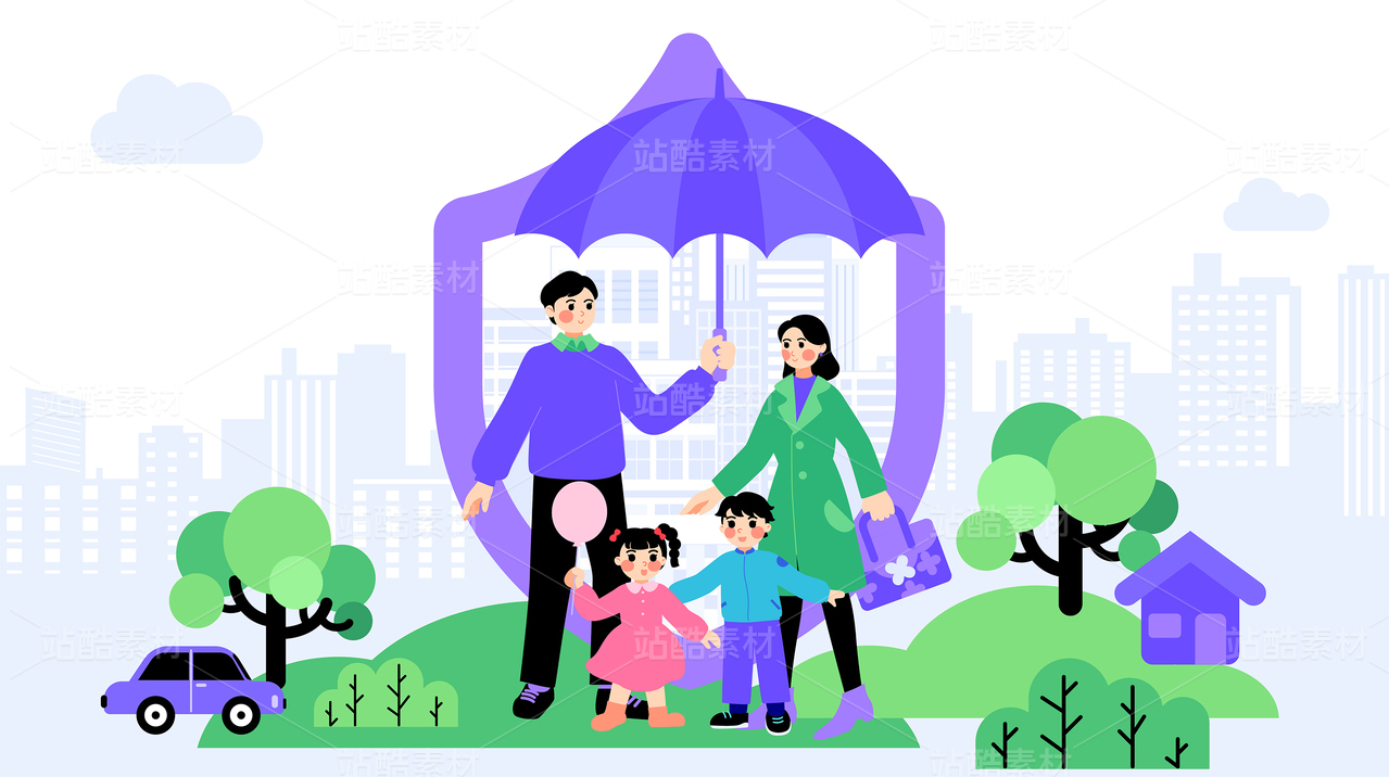 家人健康保險(xiǎn)插畫
