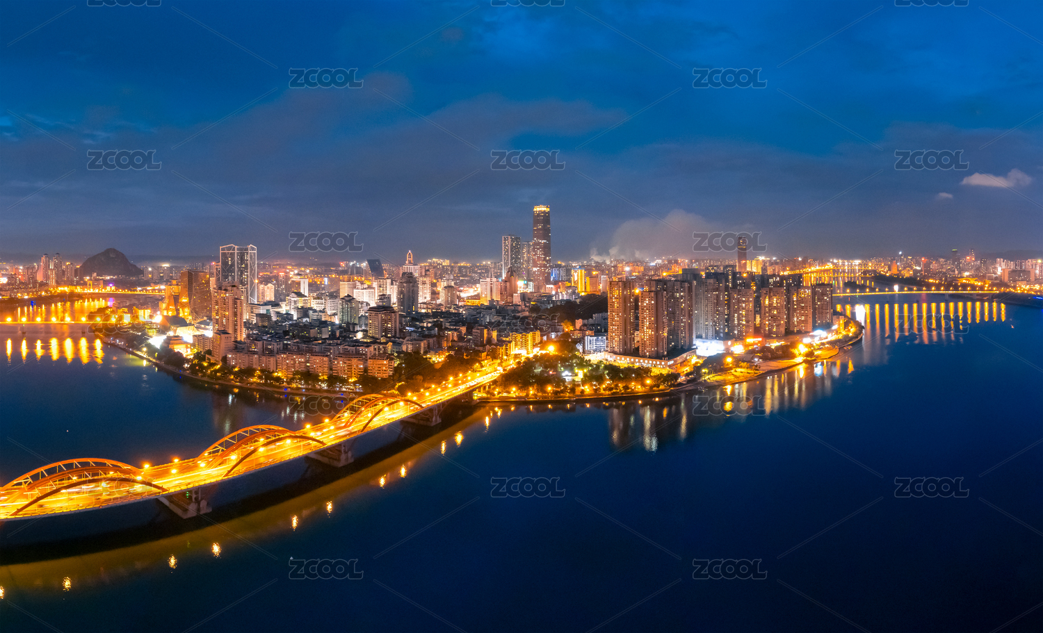 中國(guó)廣西柳州文惠橋和地王大廈夜景
