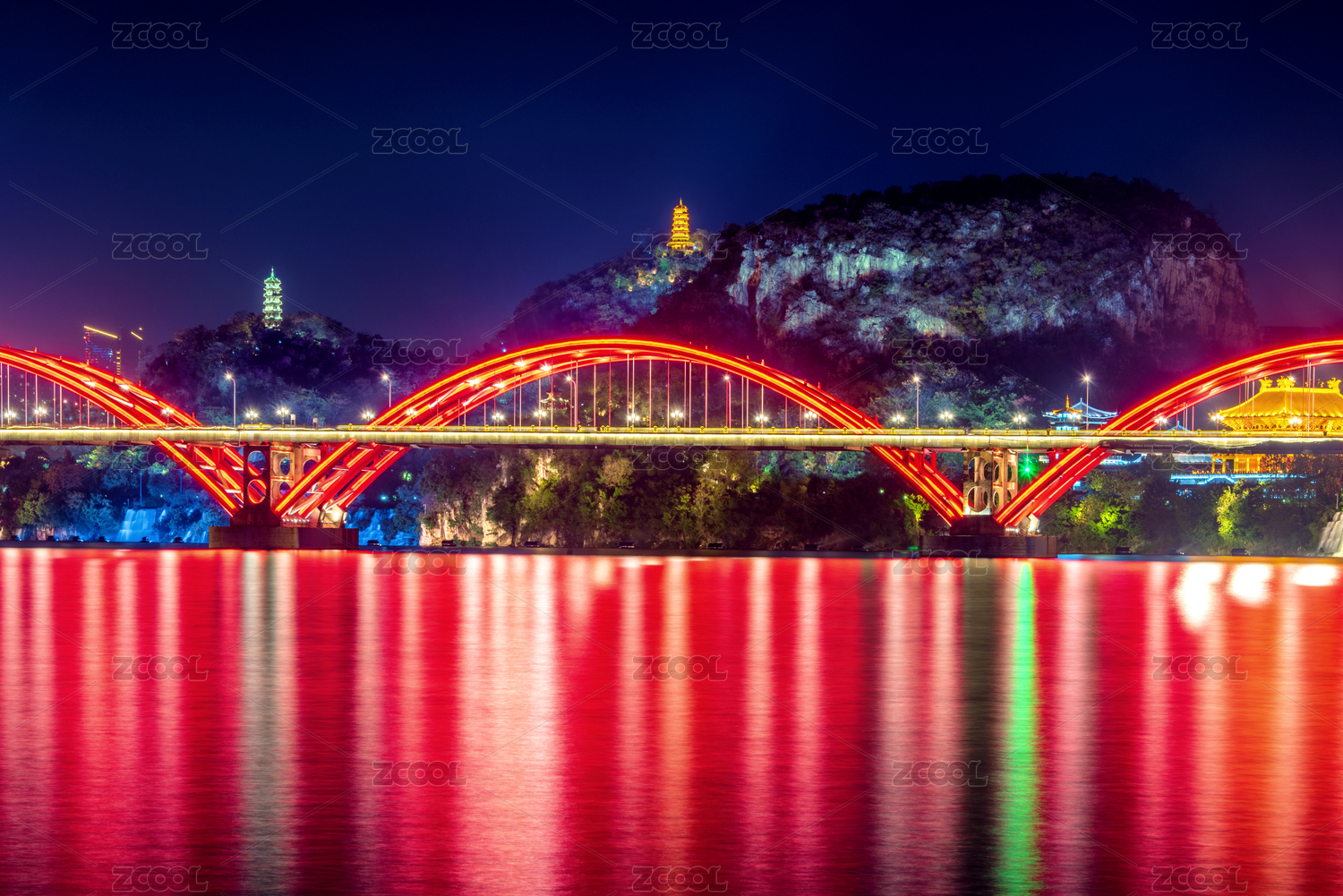中國(guó)廣西柳州山水風(fēng)光-文惠橋與蟠龍山雙塔