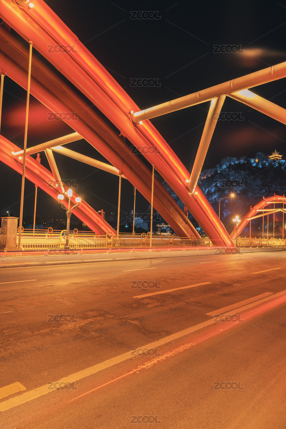 夜晚的柳州文惠橋橋面