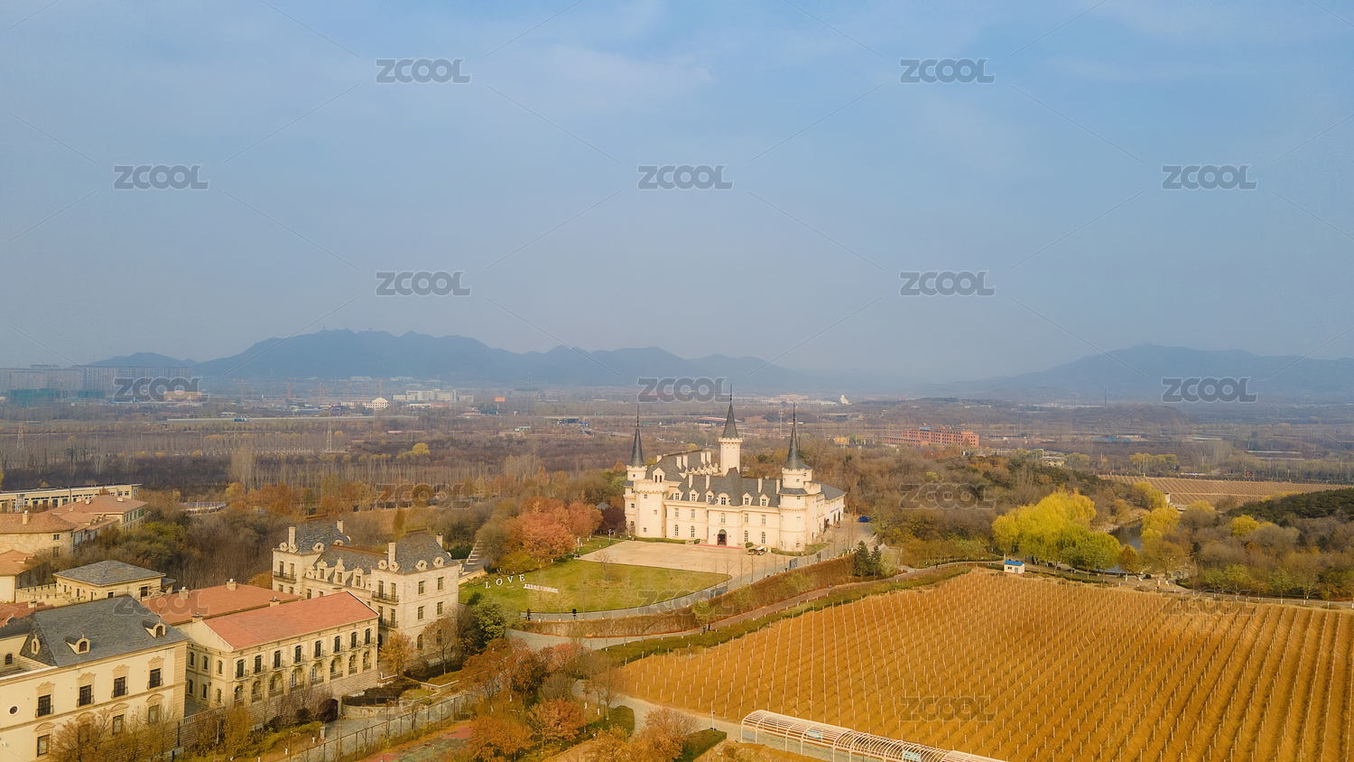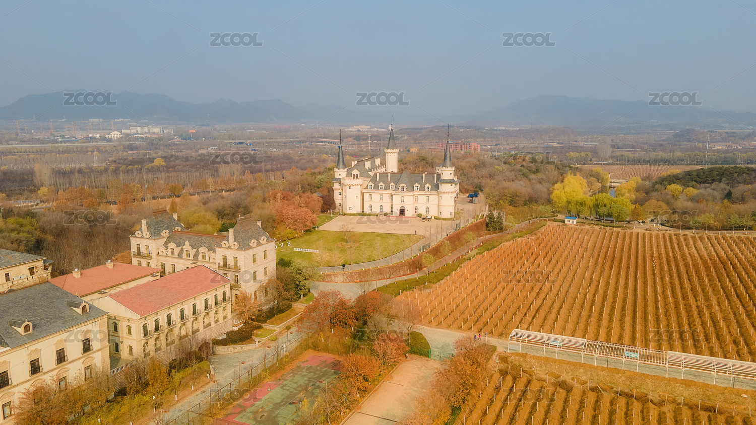 北京密云郊區(qū)葡萄園酒莊城堡冬季傍晚晚霞