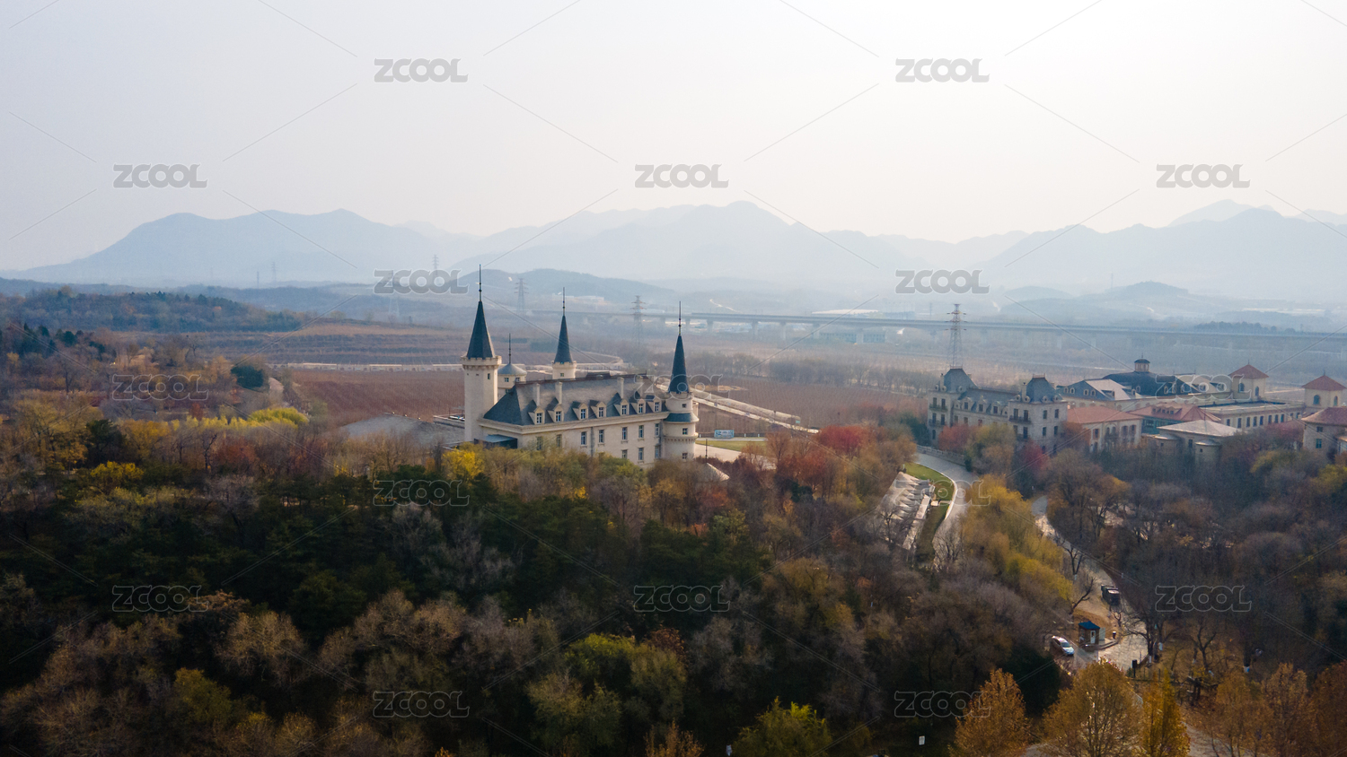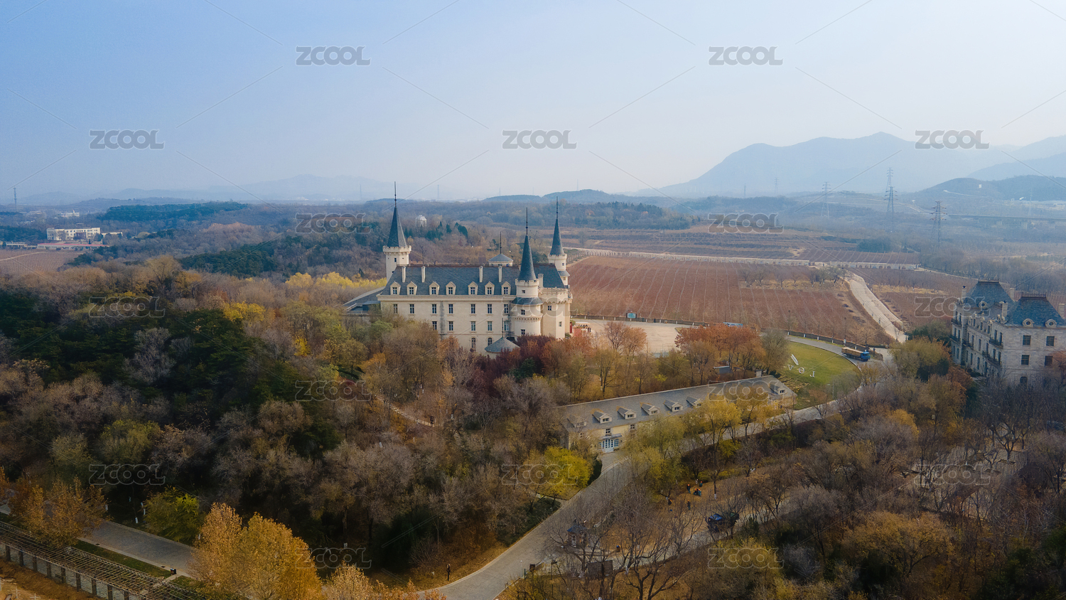 航拍煙臺張裕卡斯特酒莊景點建筑風光