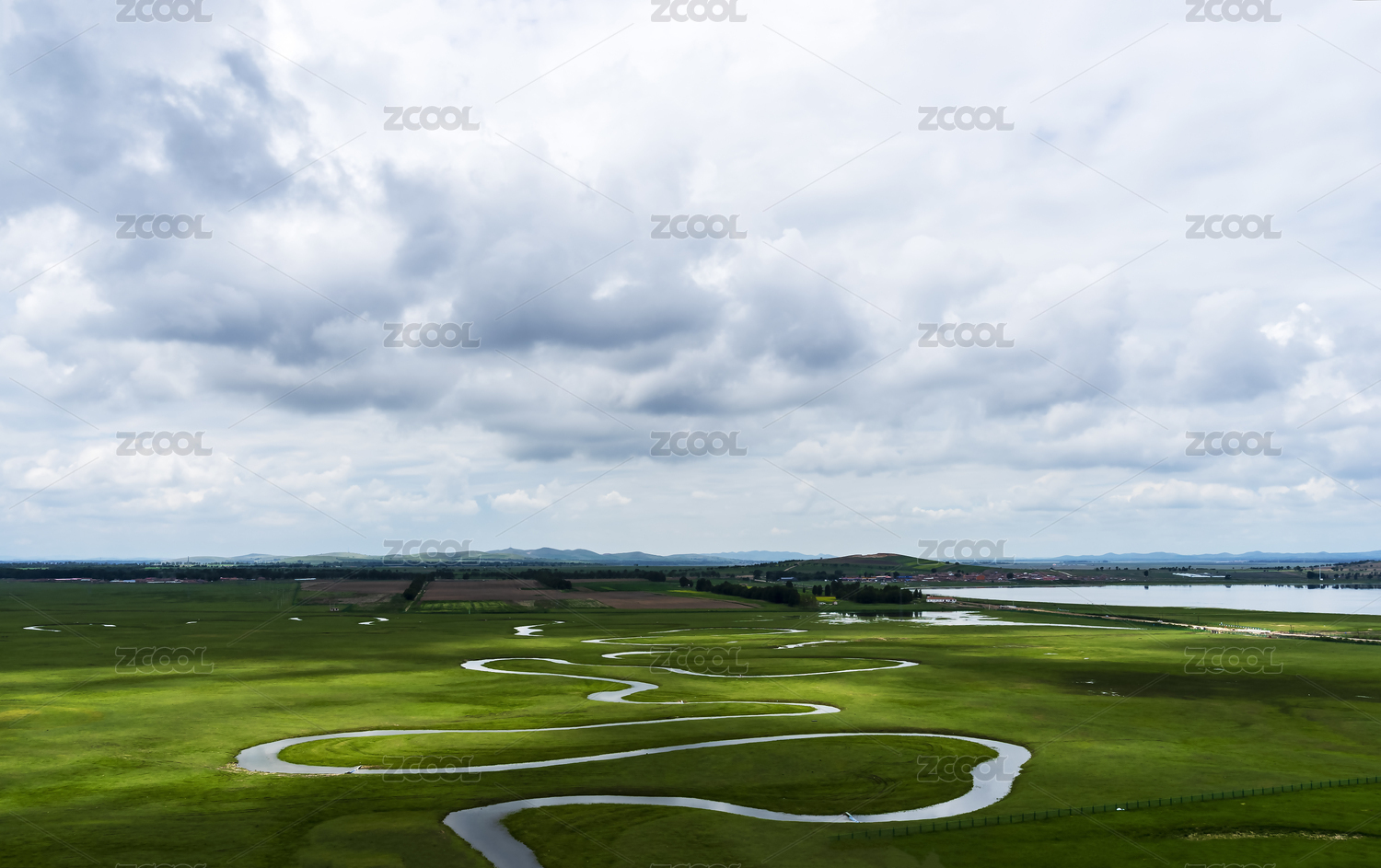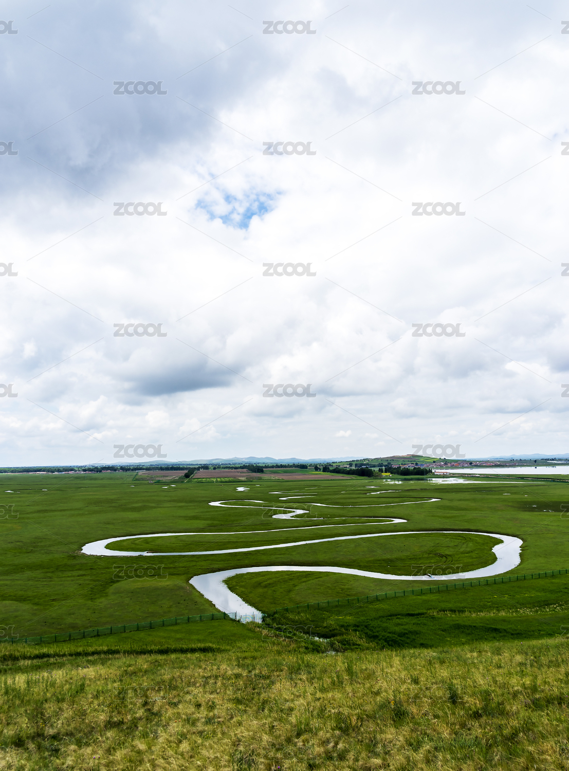 河北張家口沽源灤河神韻草原九曲河流風(fēng)光