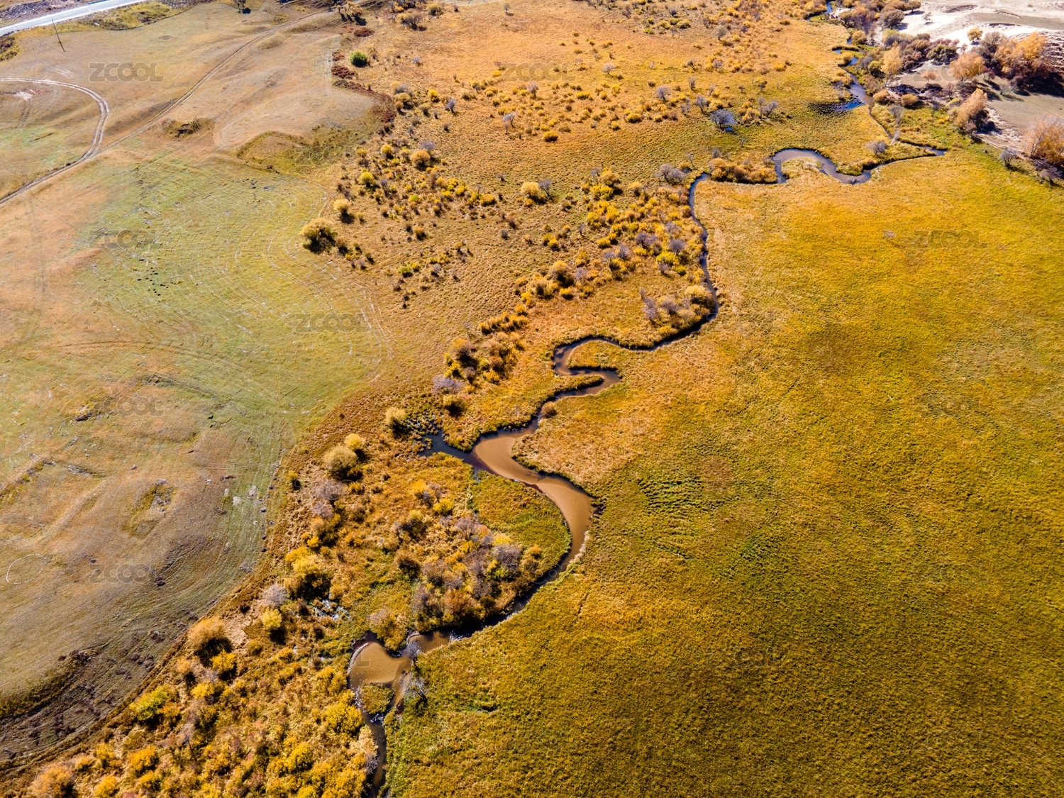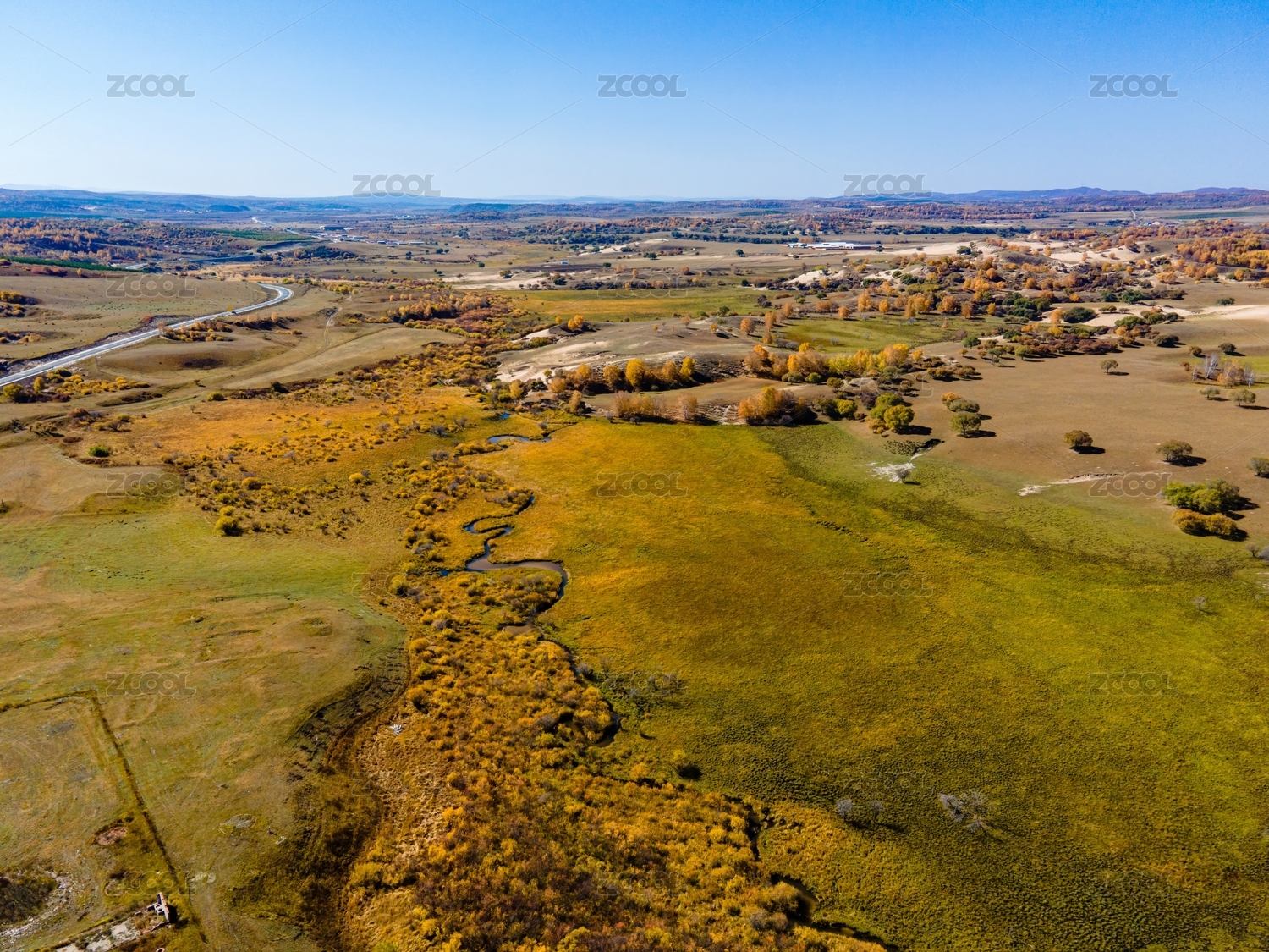 航拍秋季中國(guó)內(nèi)蒙烏蘭布統(tǒng)草原上灤河河曲