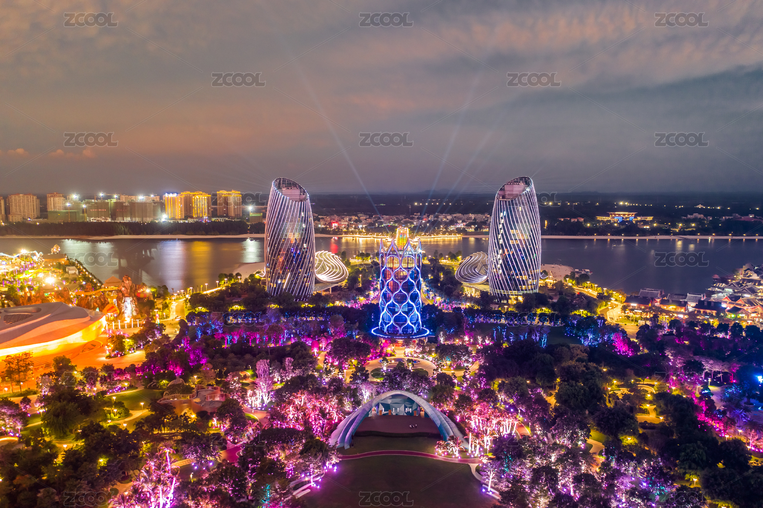 中國海南?;◢u夜景航拍