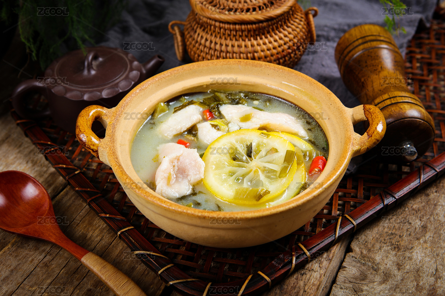 家常美食菜肴水煮檸檬酸菜魚片