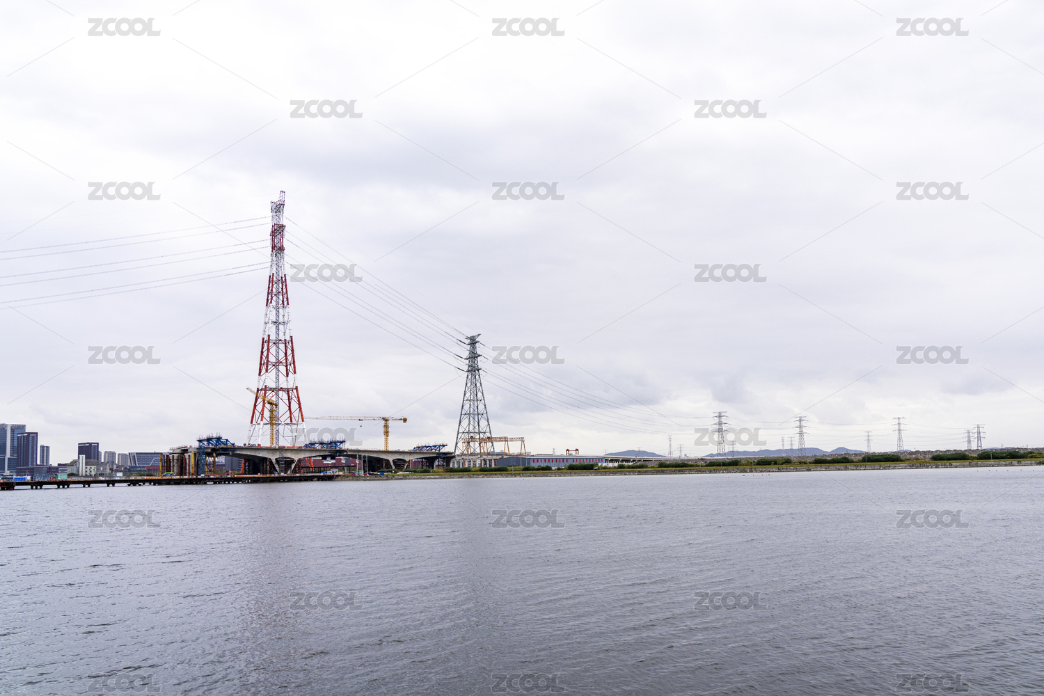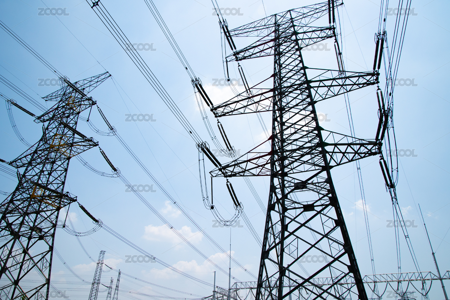 陰天烏云下的工業(yè)區(qū)的輸變電高壓鐵塔