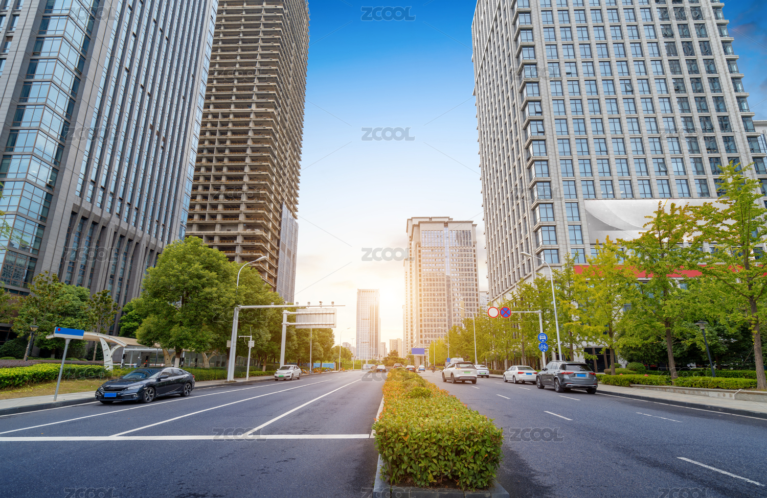 湖北武漢金融區(qū)的街景和摩天大樓