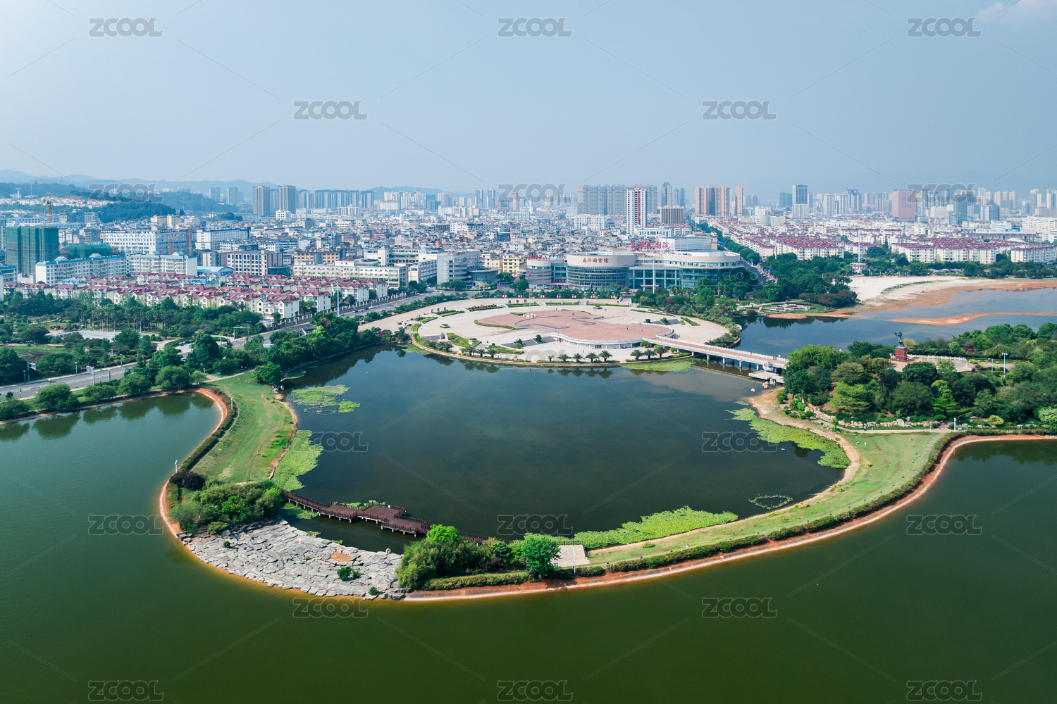 云南玉溪市聶耳音樂(lè)廣場(chǎng)城市天際線(xiàn)航拍景觀(guān)