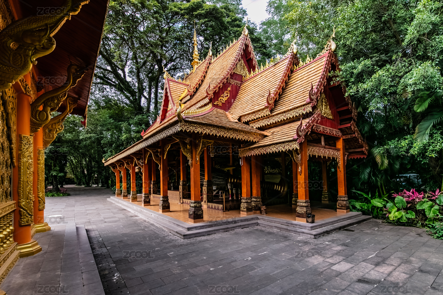 中國云南省景洪市曼聽公園泐樂器物展示園林建筑