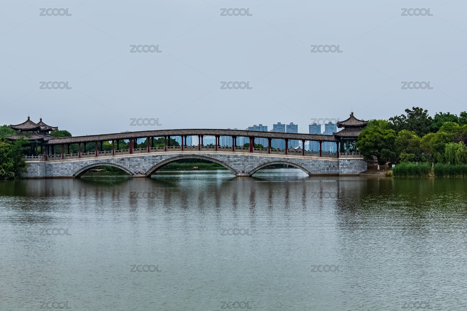 中國江蘇省徐州市云龍湖畔泛月橋廊橋建筑