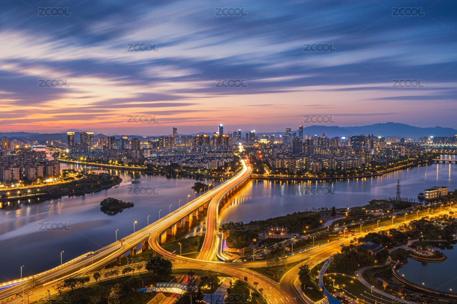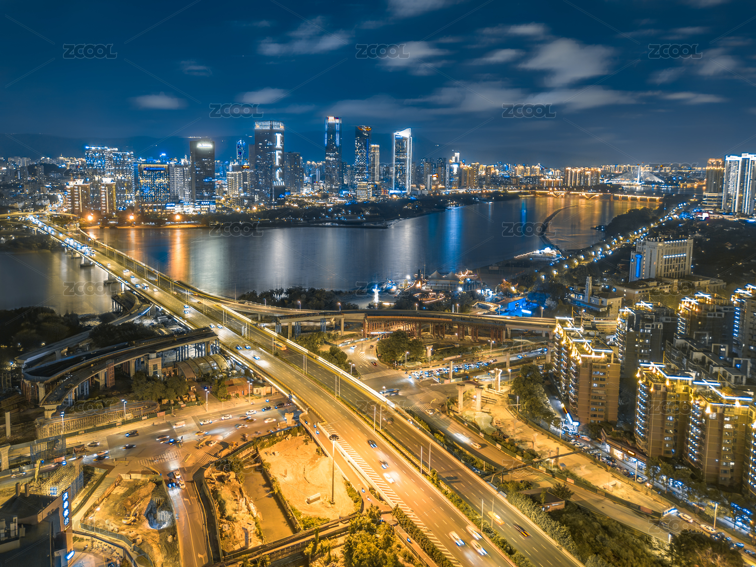 武漢金銀湖與金山大道夜景