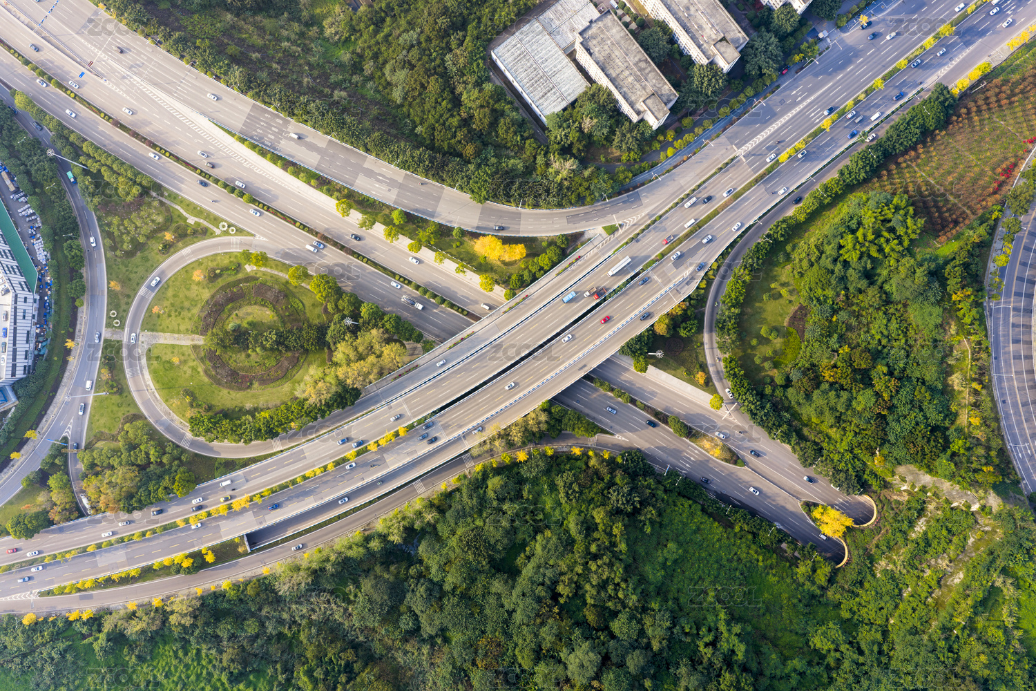 航拍俯瞰重慶兩江新區(qū)嵐峰立交