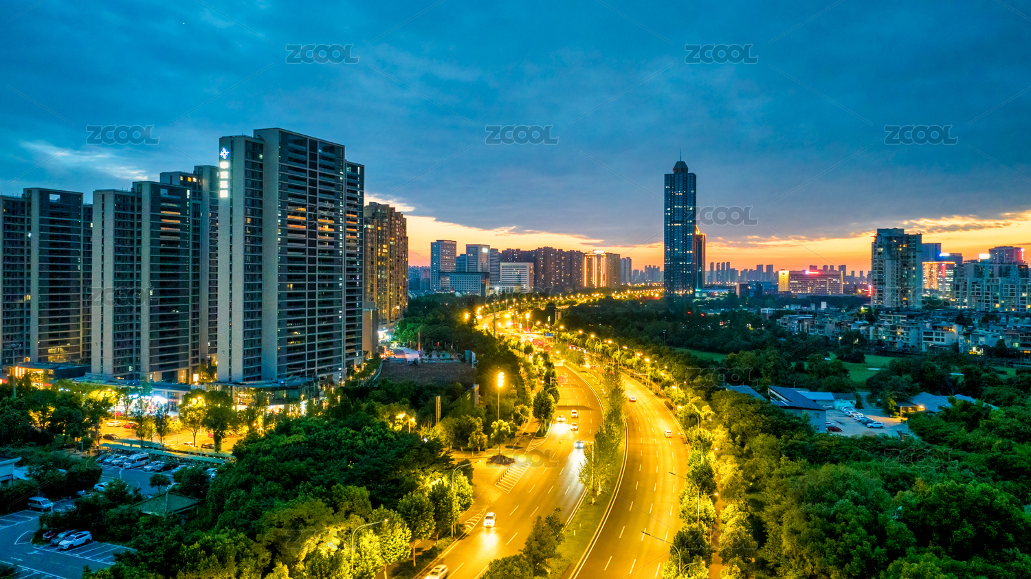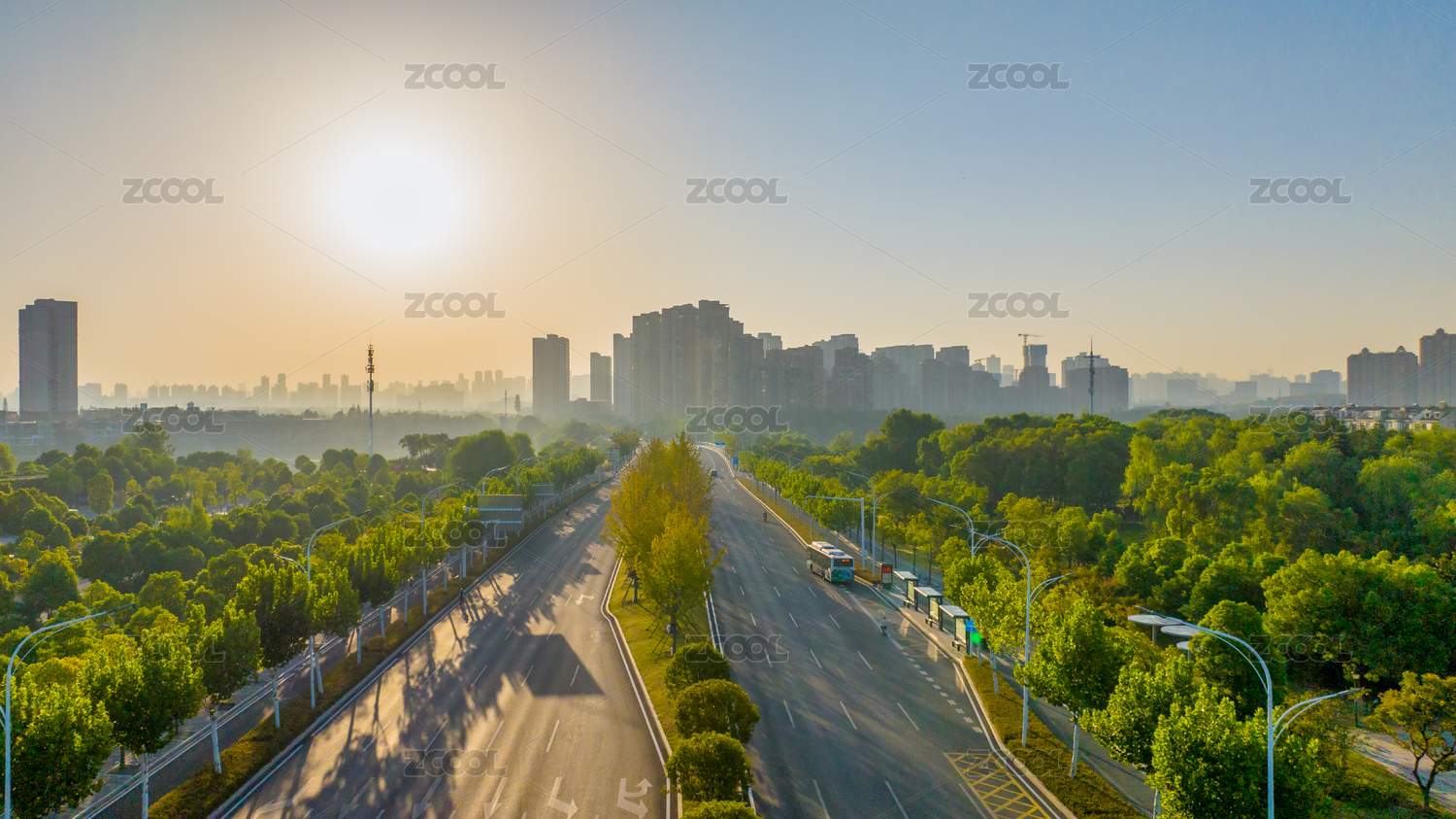 中國湖北武漢漢口金山大道清晨風(fēng)光
