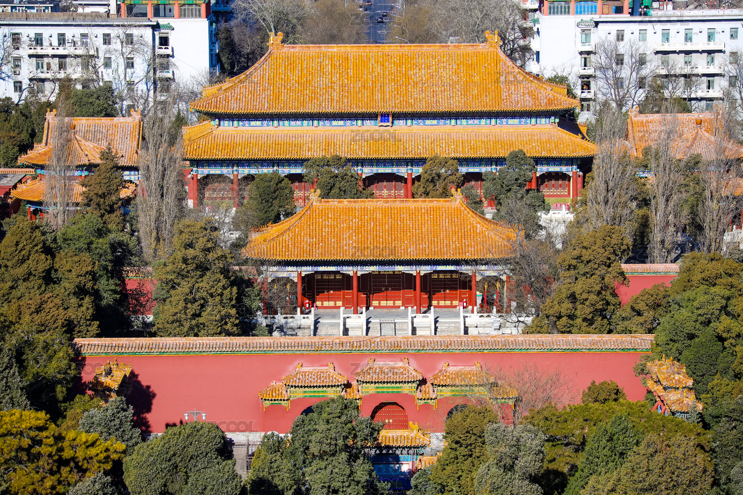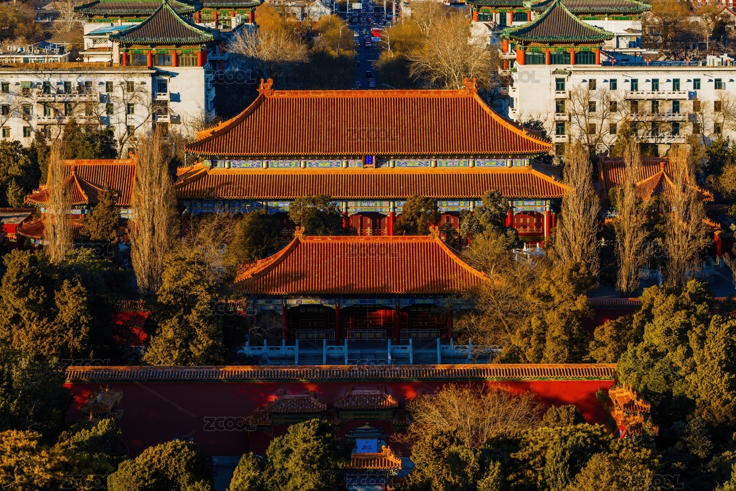 冬季陽(yáng)光下北京景山公園壽皇殿