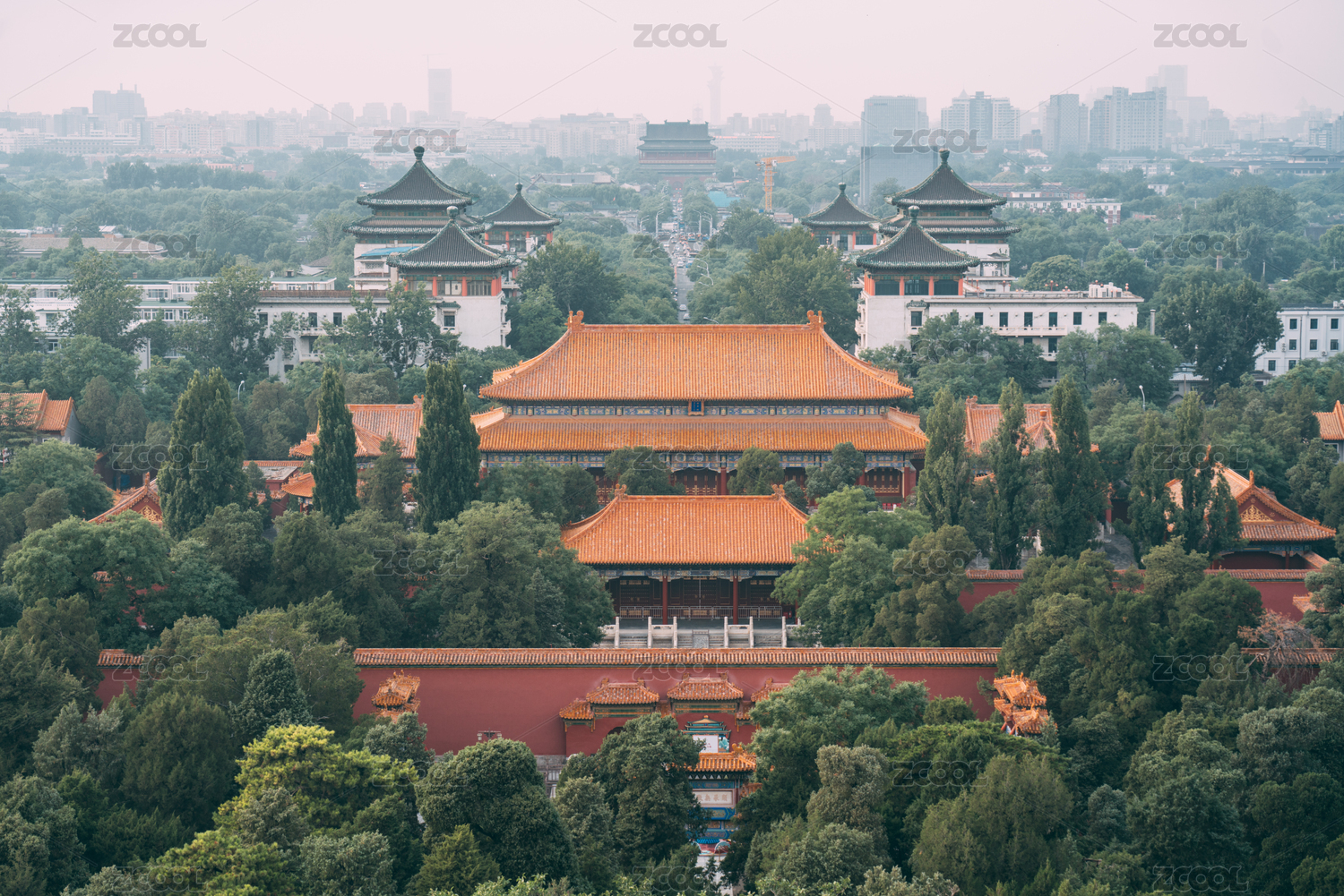 亞洲中國(guó)北京景山公園壽皇殿遠(yuǎn)景