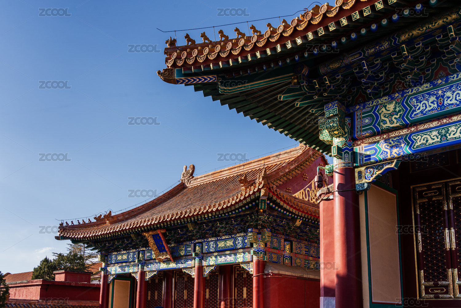 陽(yáng)光下北京景山公園壽皇殿