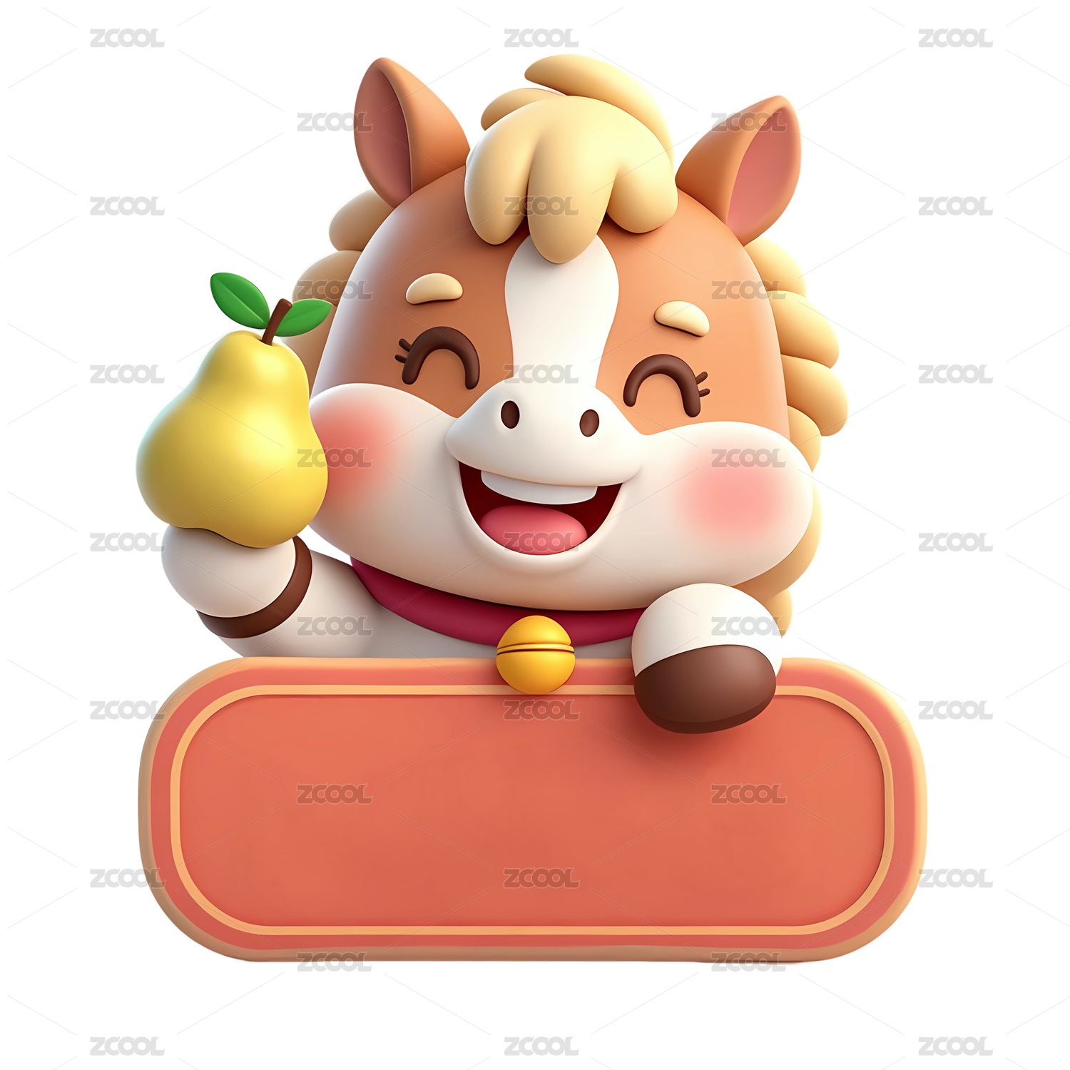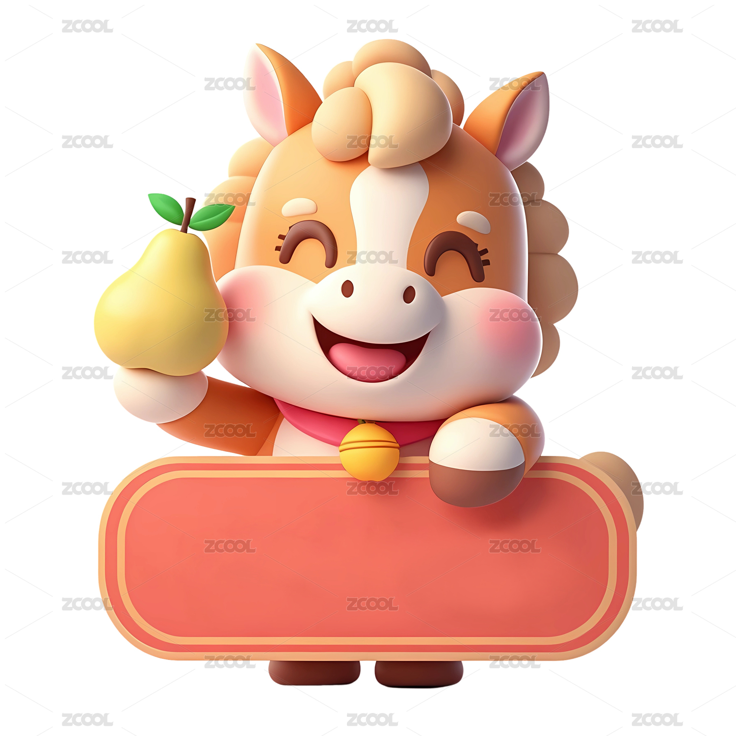 3D卡通馬年IP手持水果梨賀歲插畫圖