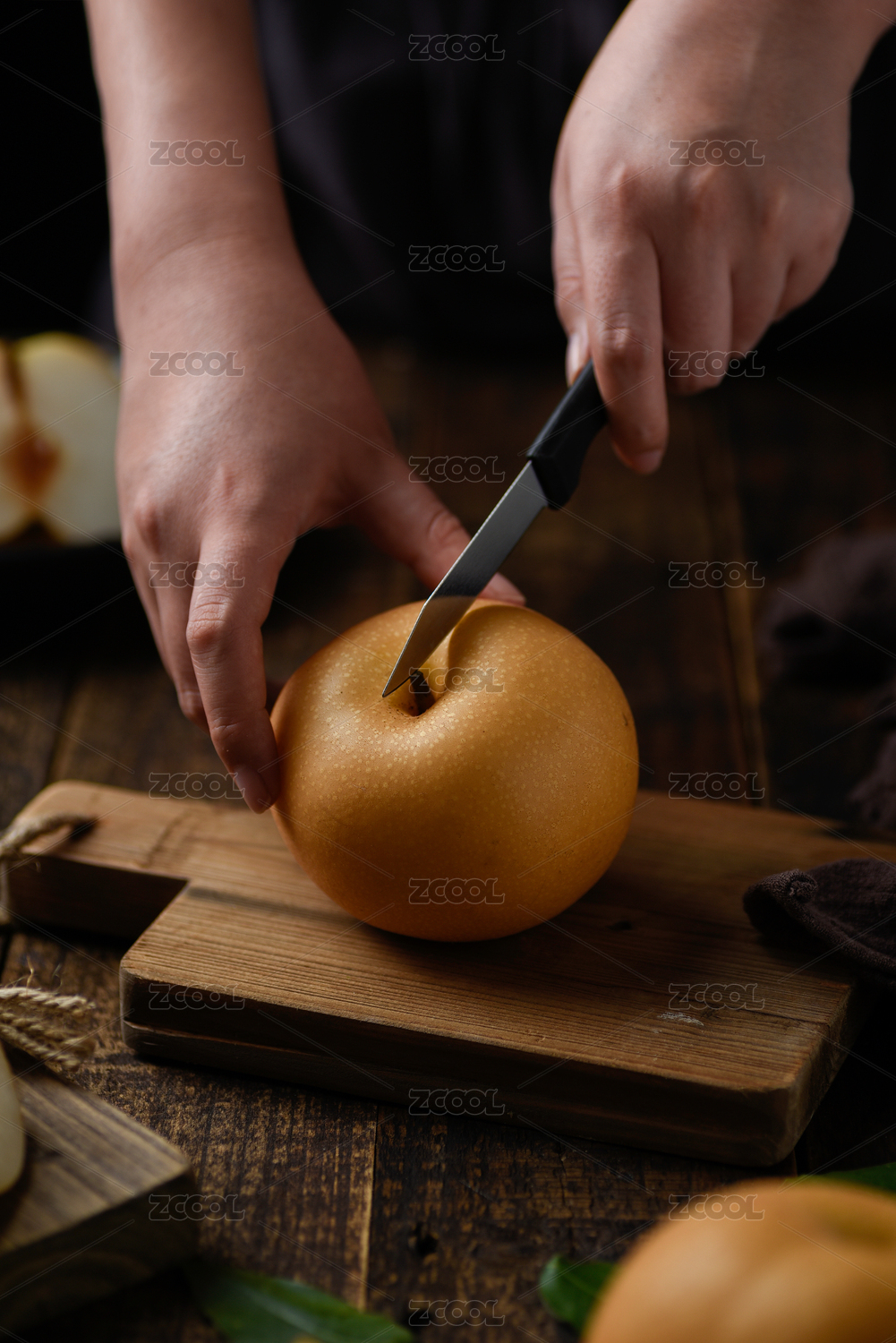 手持梨秋月梨暗調(diào)復(fù)古