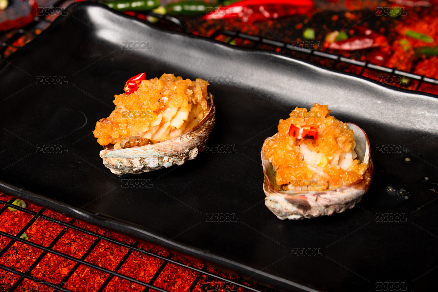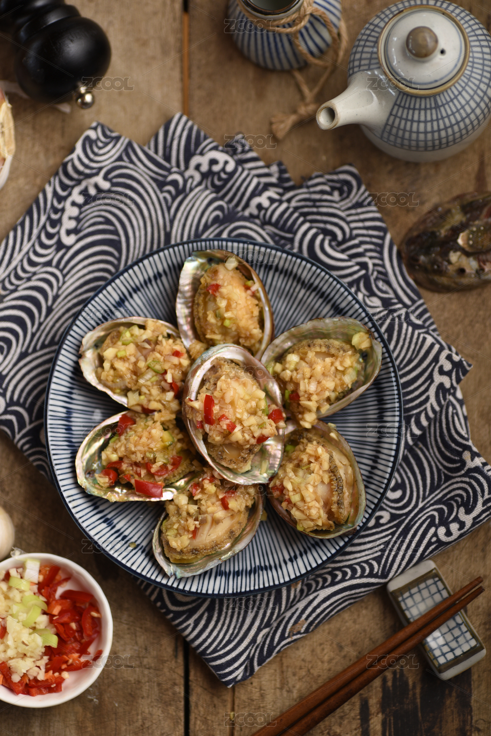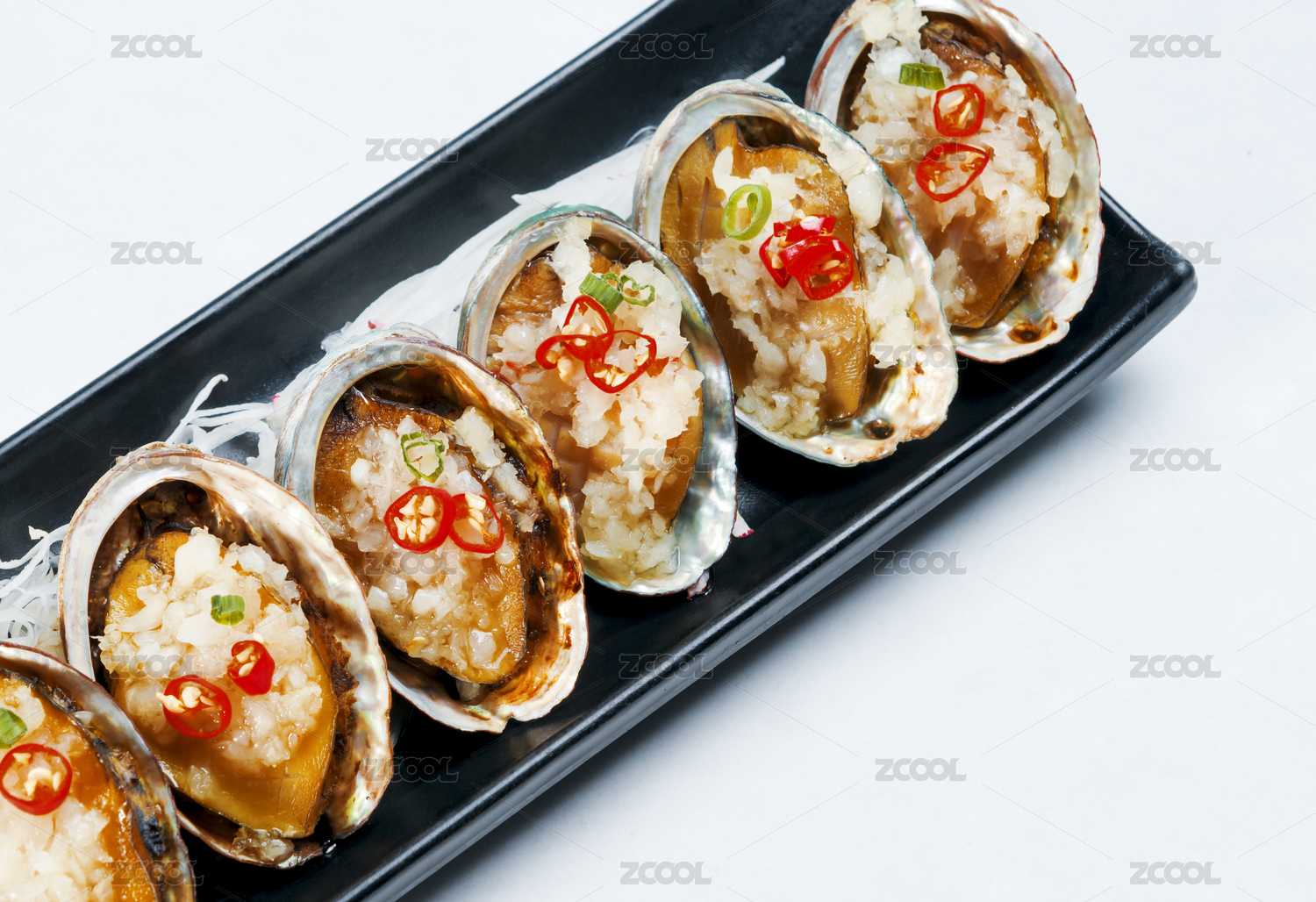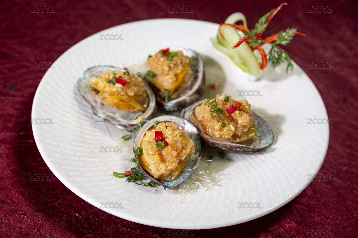 桌上盤子里的蒜蓉鮑魚特寫鏡頭