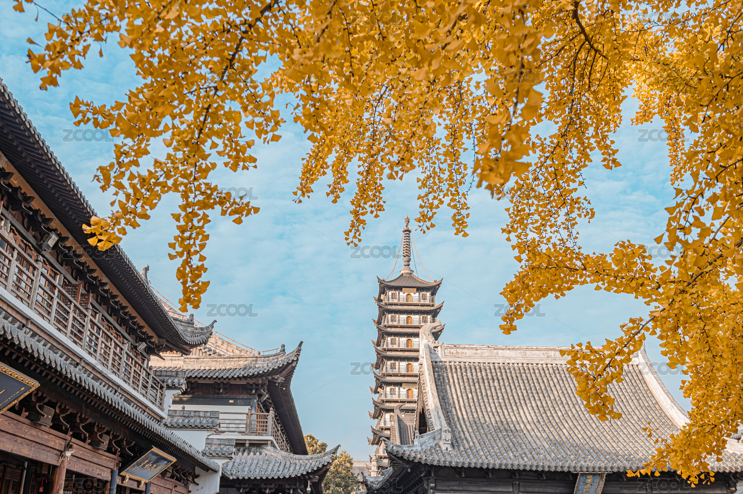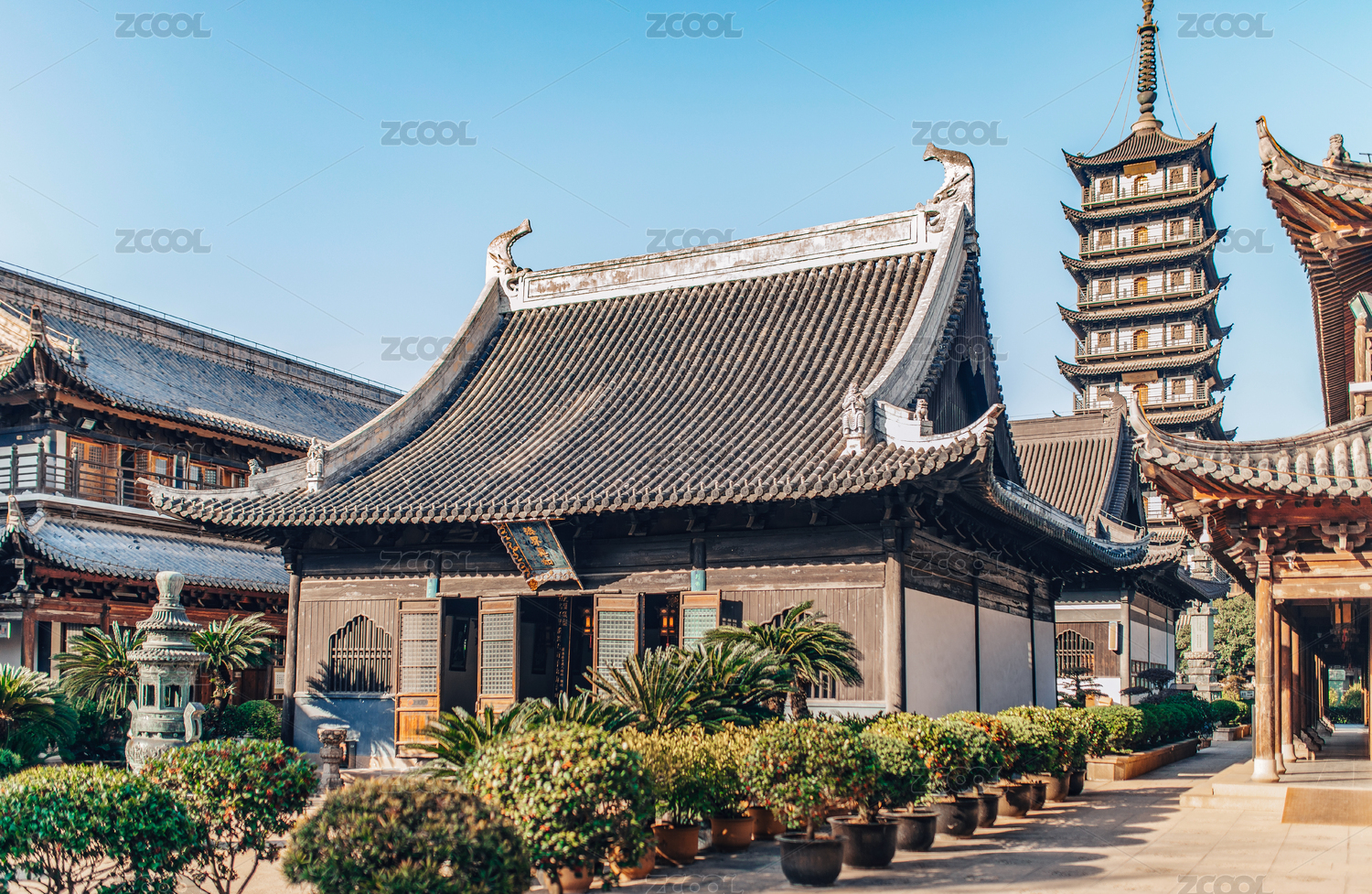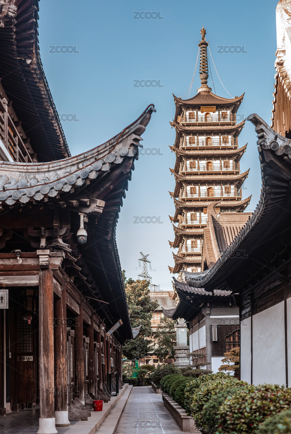中國(guó) 上海市 普陀區(qū) 真如寺 建筑 航拍