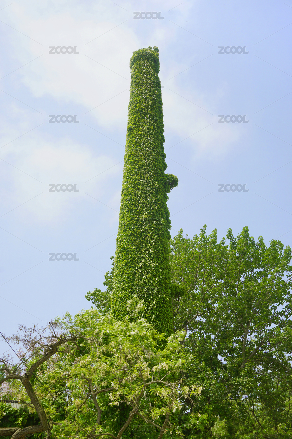 青島鄖陽路老街 古槐和爬滿藤蔓的工業(yè)煙囪