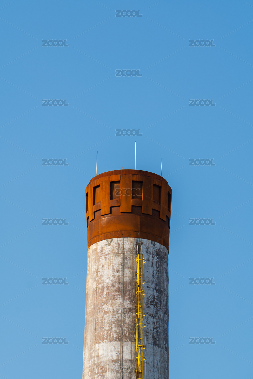 工業(yè)煙囪與藍(lán)天背景