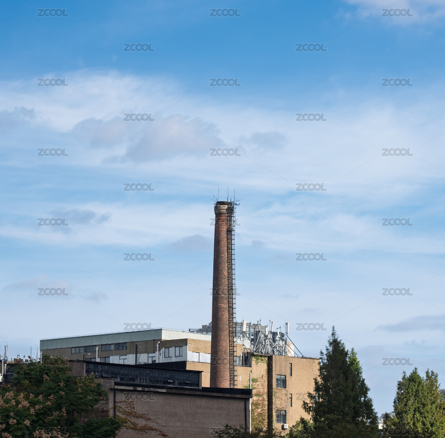 藍(lán)天下高高煙囪的老工業(yè)建筑