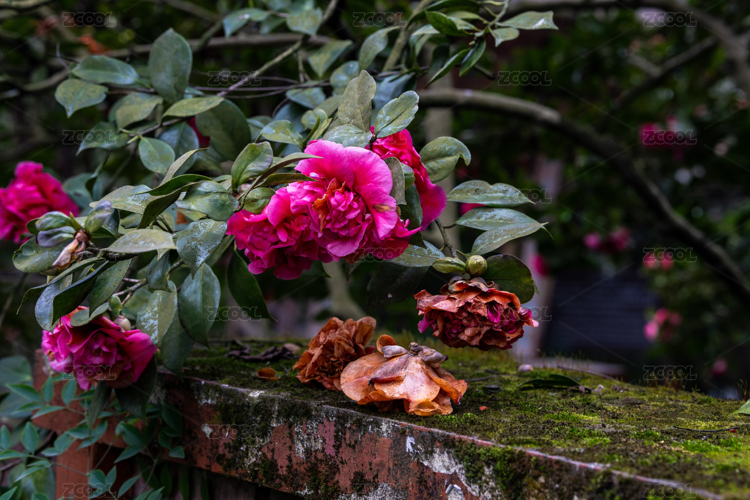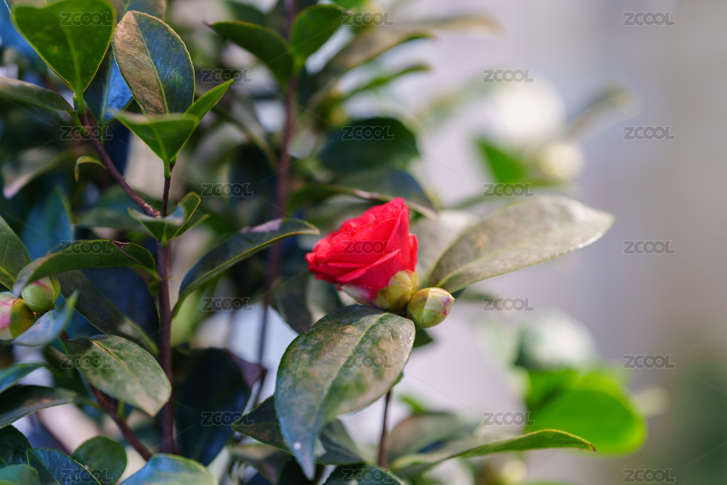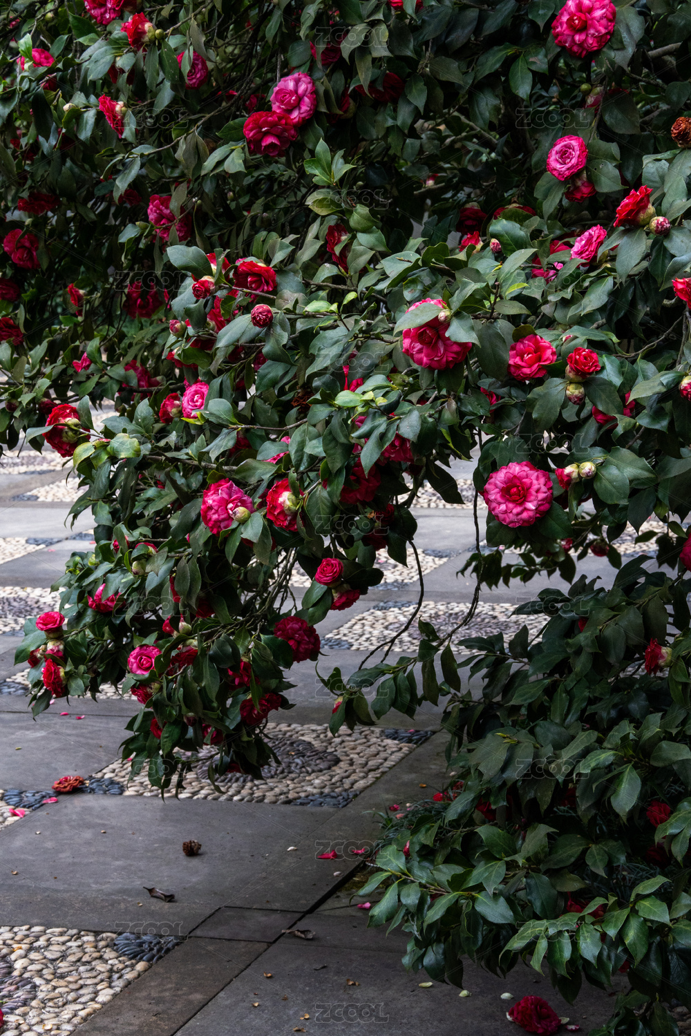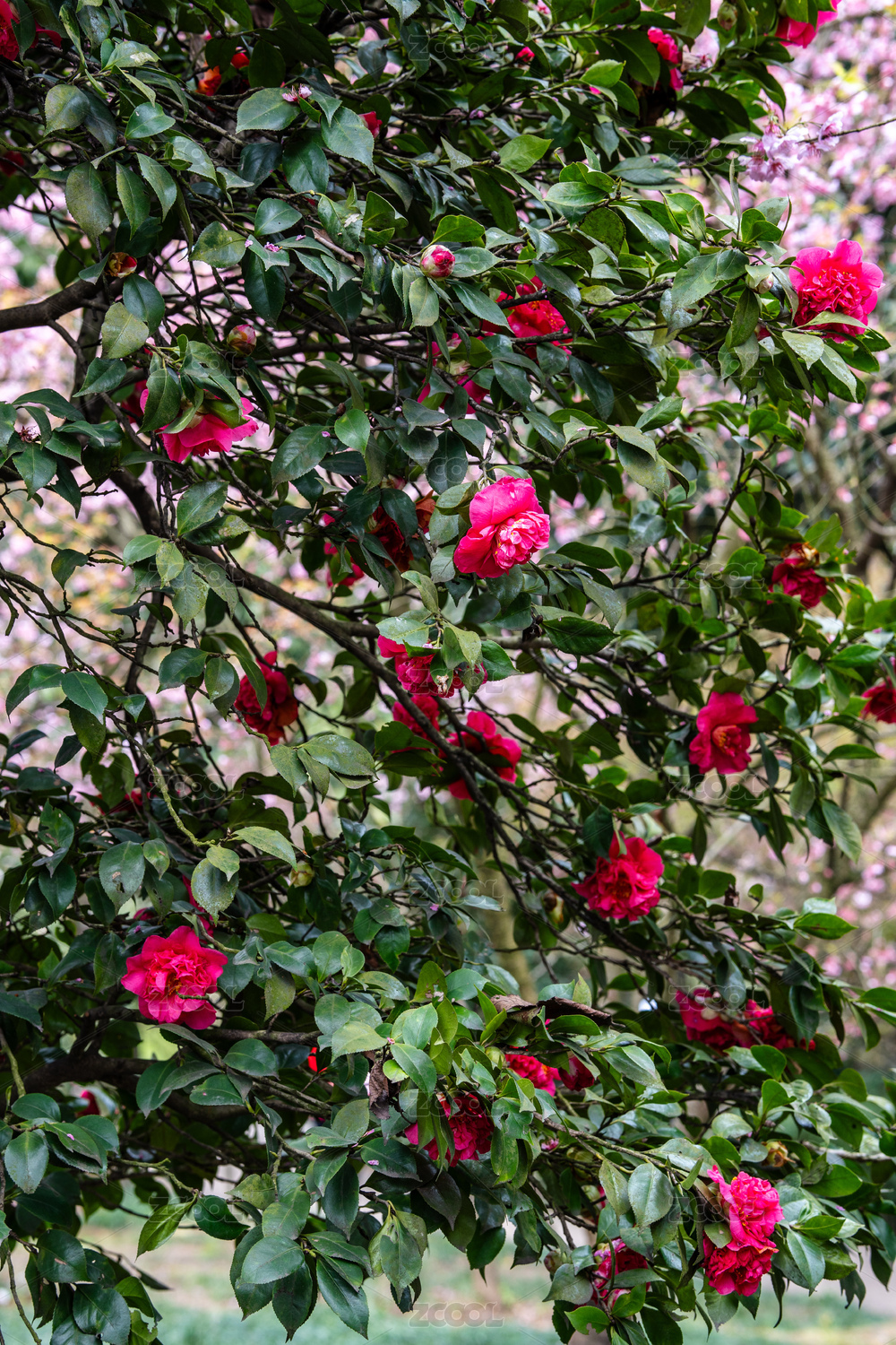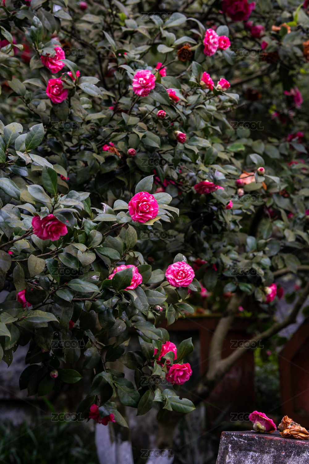 春日玫瑰紅山茶花