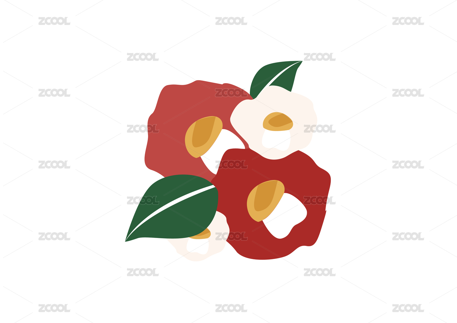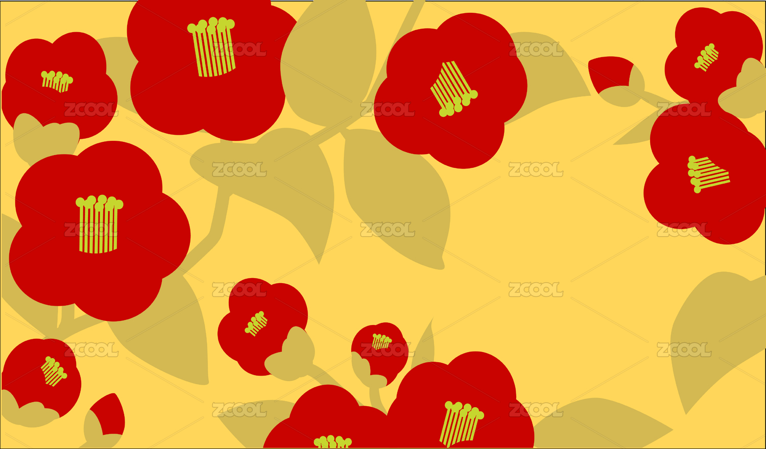 國(guó)風(fēng)金花茶紅山茶圖案