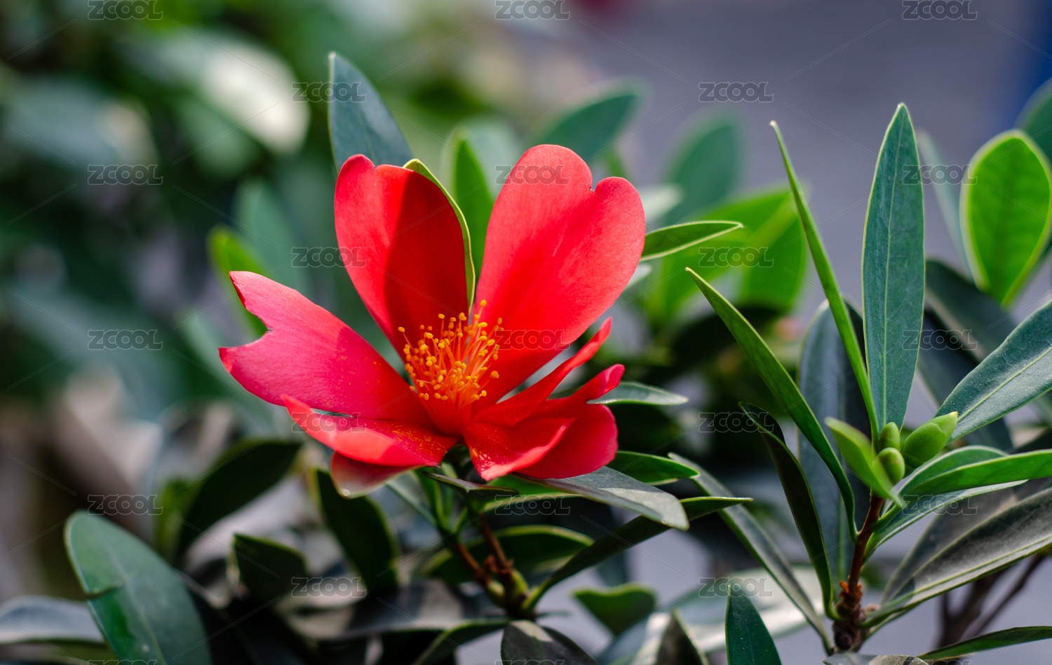 一朵鮮紅的杜鵑葉山茶