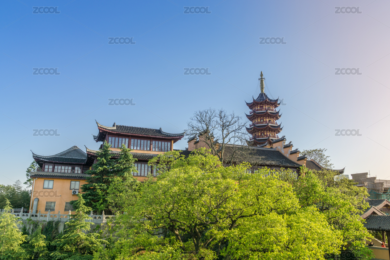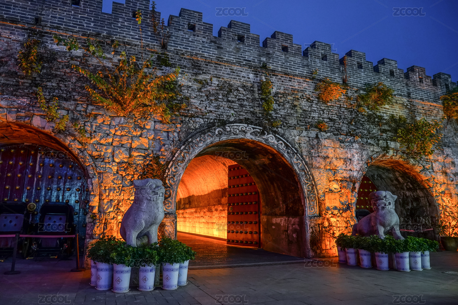 日落下的明代城墻與古代寺廟