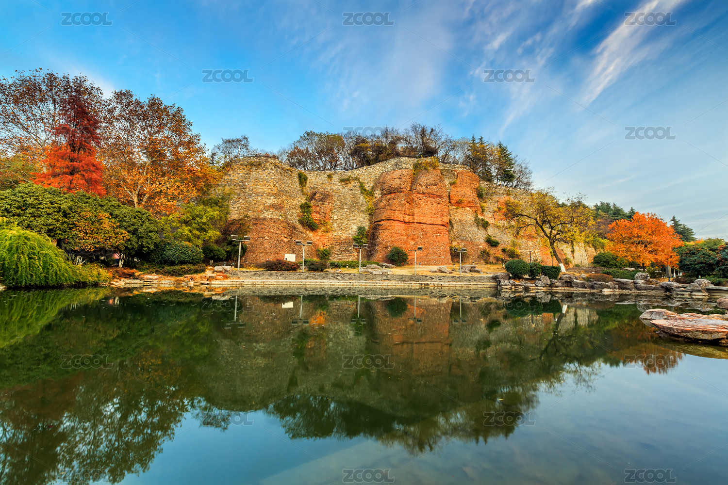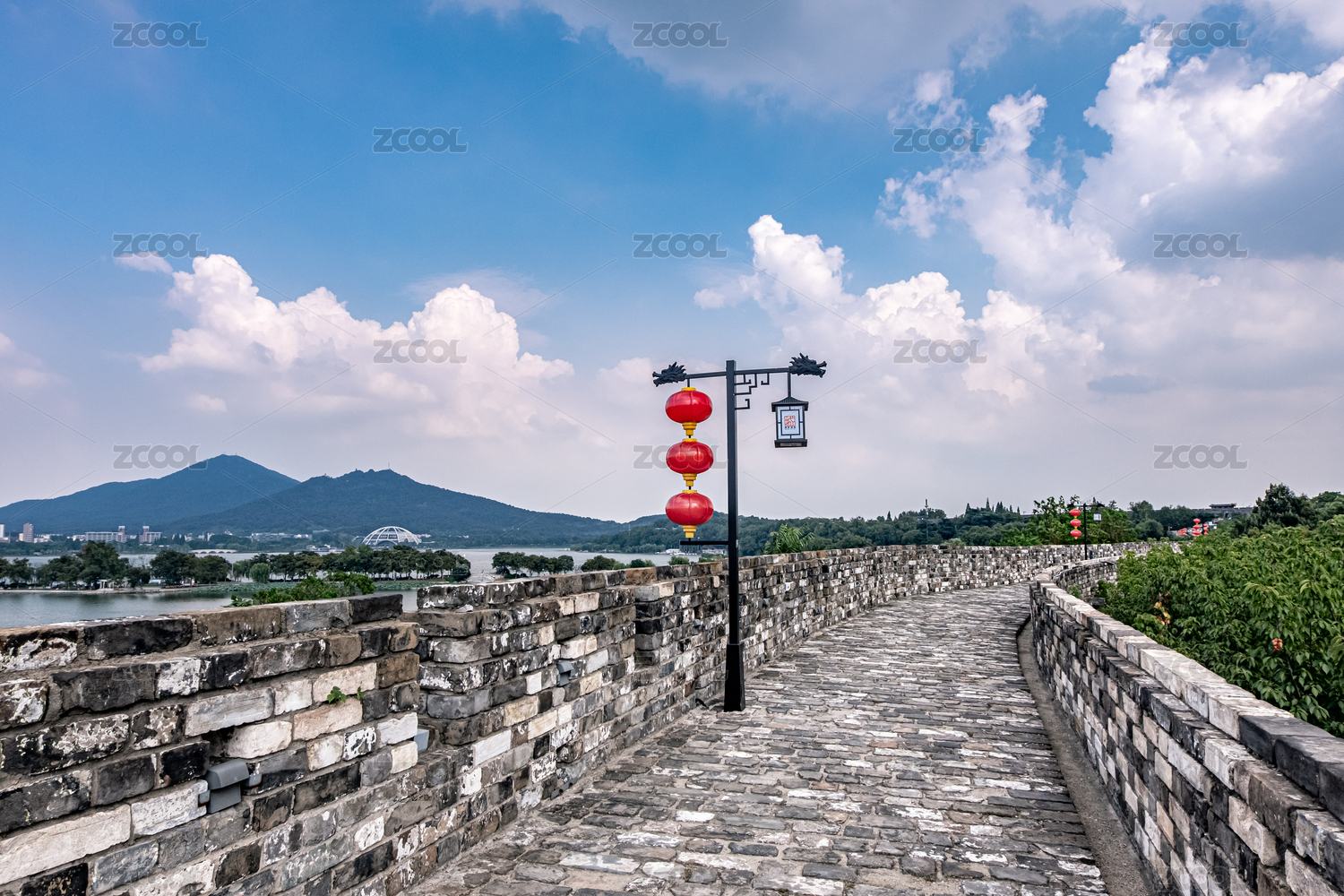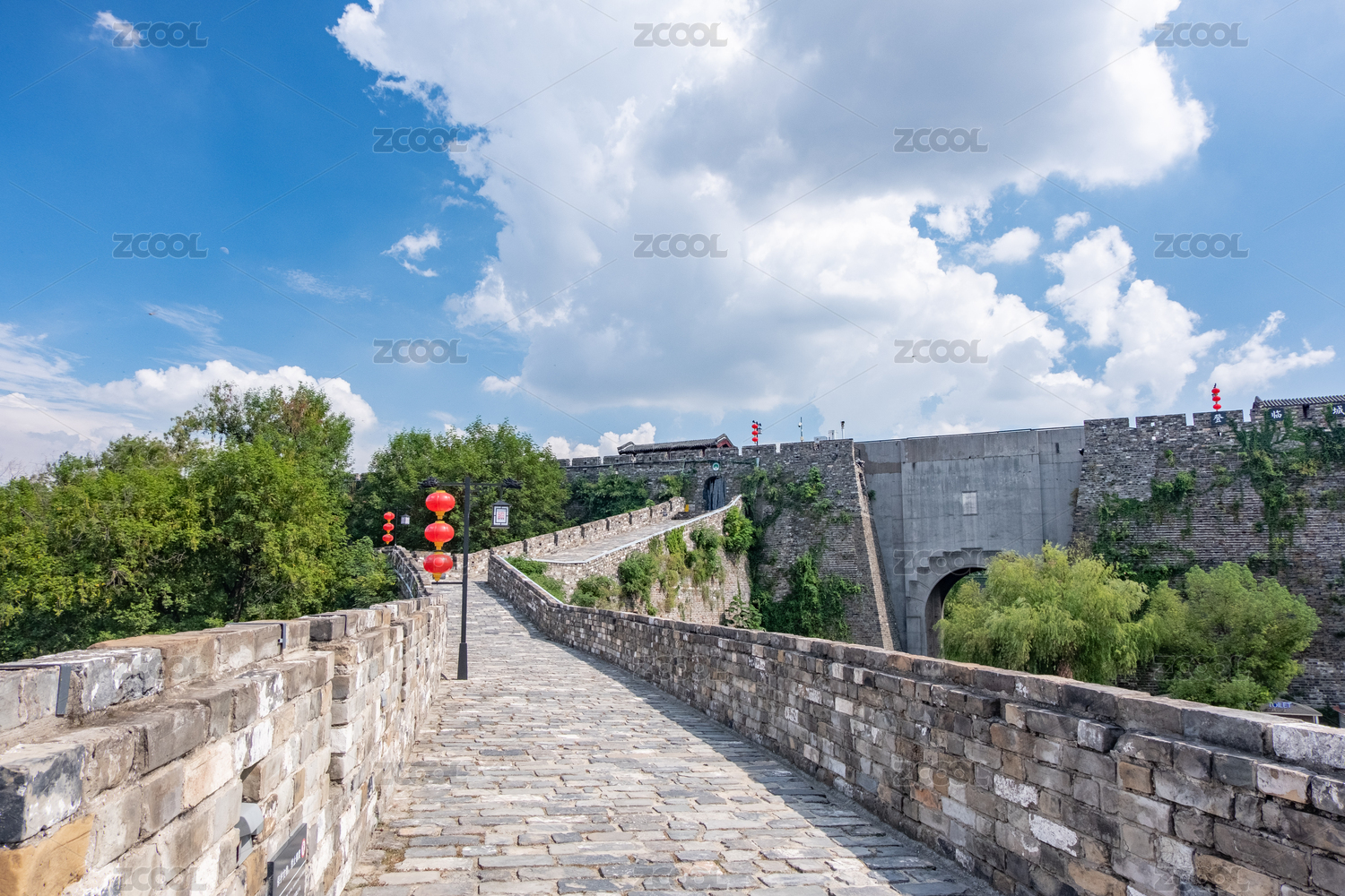 晴天下中國南京明代城墻和大紅燈籠