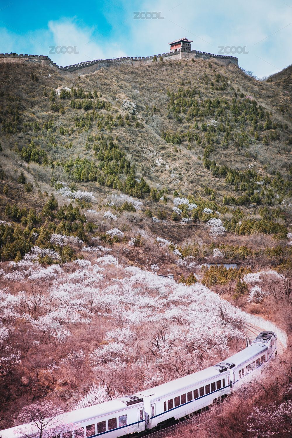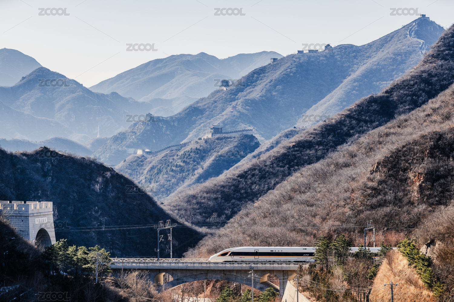 遠(yuǎn)眺北京居庸關(guān)長城與復(fù)興號高鐵動車同框