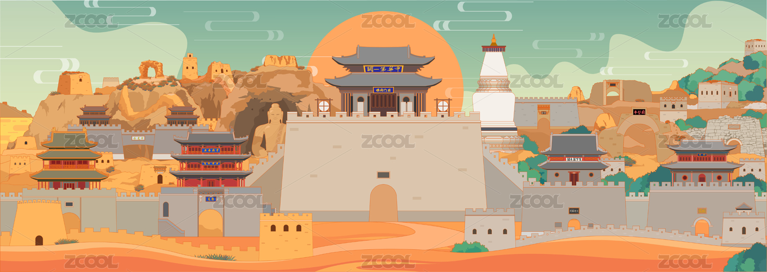 國潮風(fēng)山西長城雁門關(guān)矢量插畫