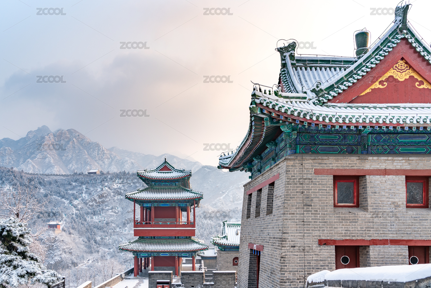雪后的北京居庸關(guān)長城自然風(fēng)光