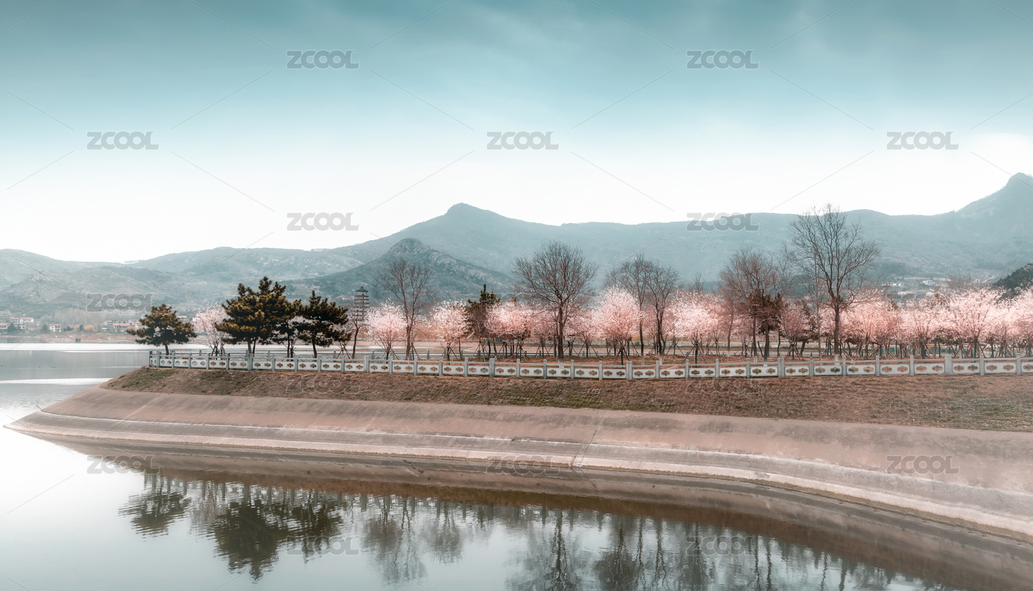 江蘇連云港市花果山下大圣湖邊櫻花大道